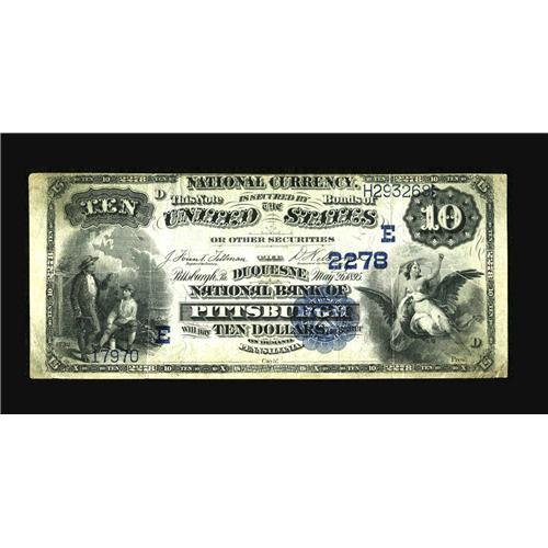 <B>Pittsburgh, PA</B></I> - $10 1882 Date Back Fr. 542 <B>The Duquesne NB</B></I> Ch. # (E)2278<BR>A less available type and denomination from a prolific big city issuer. <B>Very Fine,</B></I> with some staining about the corners.<BR><BR><b>Shipping:</b> Coins & Currency (<a target="_blank" href="http://www.heritageauctions.com/common/shipping.php">view shipping information</a>)