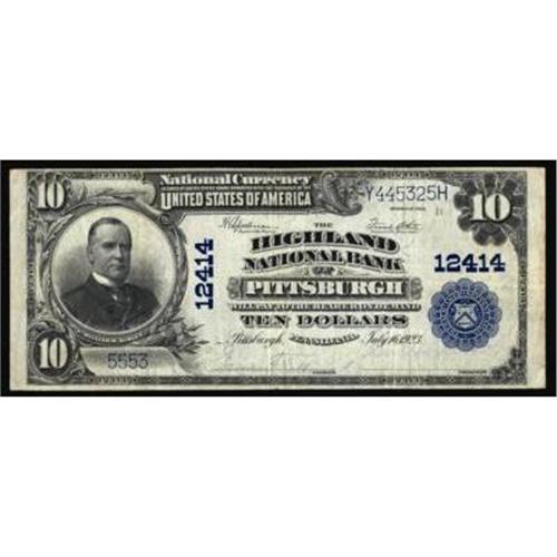 Pittsburgh, PA. $10 1902 Plain Back. Fr. 635. The Highland NB. Charter #12414. Very Fine.