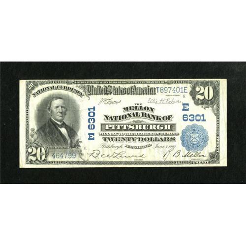 <B>Pittsburgh, PA</B></I> - $20 1902 Plain Back Fr. 650 <B>The Mellon NB</B></I> Ch. # (E)6301<BR> The paper is especially bright for the grade. <B>Very Fine.</B></I><BR><BR><b>Shipping:</b> Coins & Currency (<a target="_blank" href="http://www.heritageauctions.com/common/shipping.php">view shipping information</a>)