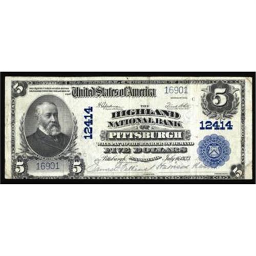 Pittsburgh, PA. $5 1902 Plain Back. Fr. 609. The Highland NB. Charter #12414. Fine.