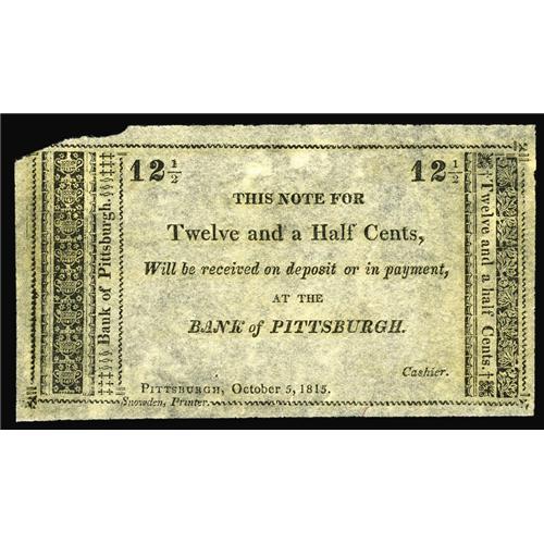 Pittsburgh, PA- Bank of Pittsburgh 12 1/2¢ Oct. 3, 1815 Pittsburgh, PA- Bank of Pittsburgh