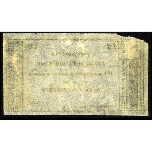 <B>Pittsburgh, PA- Bank of Pittsburgh</B></I> 12 1/2¢ Oct. 3, 1815 G10 Hoober 312-14<BR>This piece is listed as SENC in the Haxby reference. <B>Uncirculated,</B></I> with a jagged top margin that barely touches the design at the left.
