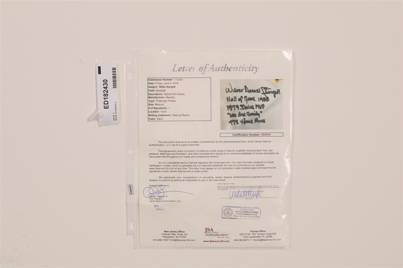 One Pittsburgh Pirates Willie Stargell Autographed Jersey. Comes with Certificate of Authenticity.