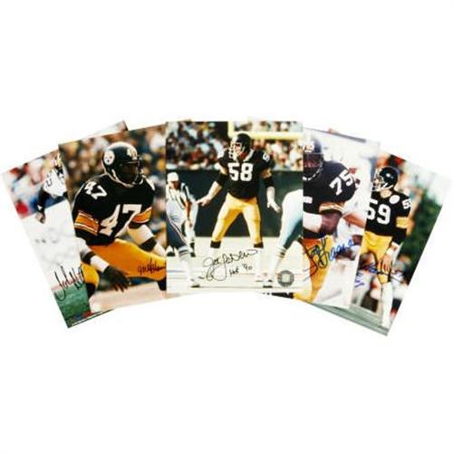 <B>Pittsburgh Steelers Hall of Famers Signed Photographs Lot of 5.</B></I> Hall of Fame signed 8x10"s from five former members of the Pittsburgh Steelers. Signatures from Jack Ham, Jack Lambert, Joe Greene, John Stallworth and Mel Blount. <I>LOA from PSA/DNA.</B></I><BR><BR><b>Shipping:</b> Flat Material, Small (<a target="_blank" href="http://www.heritageauctions.com/common/shipping.php">view shipping information</a>)
