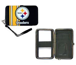 This handy hard case wristlet/purse is perfect for going to a game or bar, when you don’t want to carry a big purse around. It can hold your mp3 player or phone with an elastic strap inside. There is a clear plastic cover on the outside so you can use any touch screen smartphone to text or talk, while it’s in the case. It can also hold your ID, 2 credit cards and money! Show your team spirit while toting your essential stuff! 6" x 3.75" in size.. Made By Little Earth