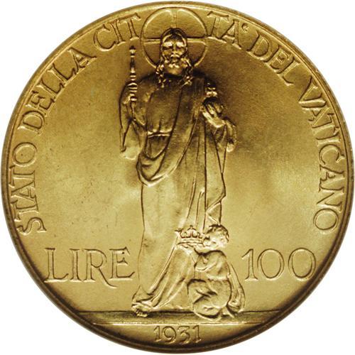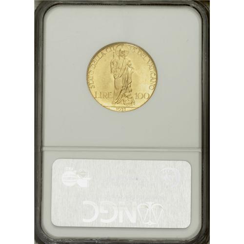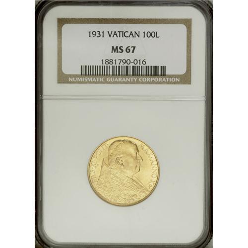 Pius XI gold 100 Lire 1931, KM-9, MS67 NGC, a gorgeous