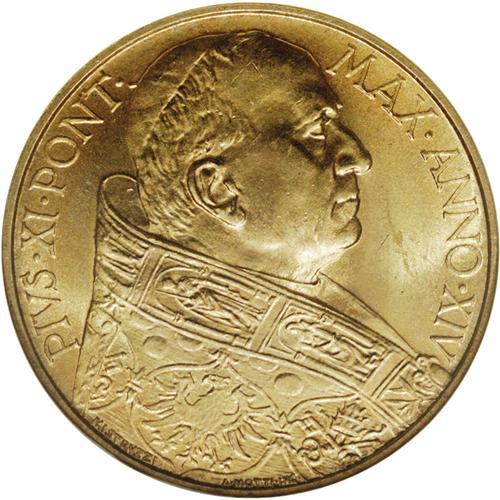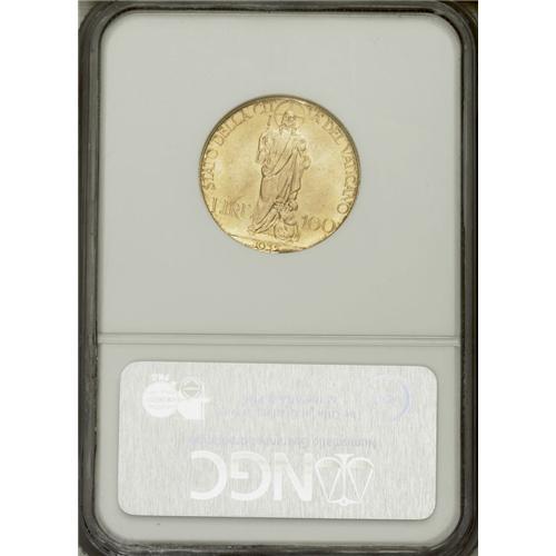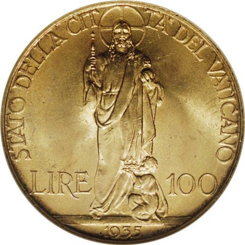 Pius XI gold 100 Lire 1935, KM-9, MS66 NGC, another sat