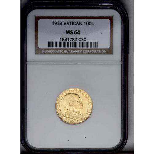 <B>Pius XII gold 100 Lire 1939, </B></I>KM-Y30.1, MS64 NGC, another real beauty.