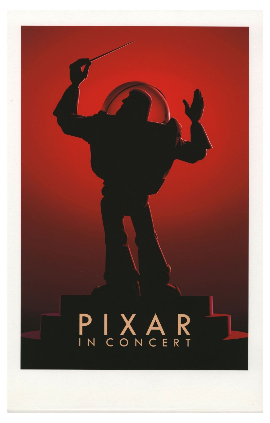 (Pixar, c.2010s) A beautiful print celebrating Pixar in Concert. The image features Buzz Lightyear as the conductor and is used in promotional imagery for the annual Pixar in Concert series, for which music in Pixar films is performed by a live orchestra. The image measures 17"x11" and is in very good condition.