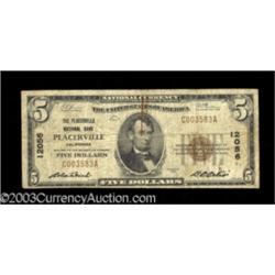 <TABLE cellSpacing=0 cellPadding=0 width="100%" bgColor=#000000 border=0><TBODY> <TR><TD width="100%"><TABLE cellSpacing=1 cellPadding=3 width="100%" border=0><TBODY><TR><TD width="100%" bgColor=#79735c><FONT face=arial color=#ffffff size=3><B>Description</B> </FONT></TD></TR><TR><TD width="100%" bgColor=#ffffff><FONT face=arial size=2><B>Placerville, CA</B></I> - $5 1929 Ty. 1 <B>The Placerville NB</B></I> Ch. # 12056<BR>This bank issued only the $5 denomination in the 1929 series and was the only institution to issue from here. <B>Very Good-Fine</B></I> with a paper clip rust stain on the face. Scarce. (300-500 ) </FONT></TD></TR></TBODY></TABLE></TD></TR></TBODY></TABLE><BR><TABLE cellSpacing=0 cellPadding=0 width="100%" bgColor=#000000 border=0><TBODY><TR> Important notice: Heritage usually auctions material at the rate of 200-250 lots per hour. On some occasions eBay Live bid software or the Internet may not be able to keep up with the pace of the auction. We recommend placing a realistic absentee bid now as insurance to avoid disappointment. Occasionally the auctioneer may eliminate or reject an eBay Live bid, and the auctioneer may also reopen a lot after the close of the eBay live bidding (usually because we missed an audience bid), and may reject your bid even if it shows you as the winning bidder. By bidding via eBay Live, you agree that Heritage may award the lot to another bidder at its sole discretion under the circumstances described above or any other reasonable circumstances. Also please note that all Heritage lots purchased through eBay Live carry a 20% Buyer's Premium. Please make sure you read the Terms and Conditions before you bid.</TR></TBODY></TABLE>
