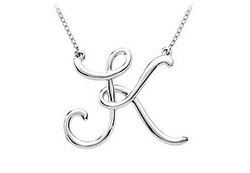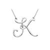 Expressing your meaningful individuality with this stylish letter 'K' script initial pendant. Made in shiny polished .925 sterling silver rhodium and comes with a standard 16" sterling silver chain.