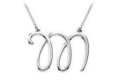 Expressing your meaningful individuality with this stylish letter 'M' script initial pendant. Made in shiny polished .925 sterling silver rhodium and comes with a standard 16" sterling silver chain.