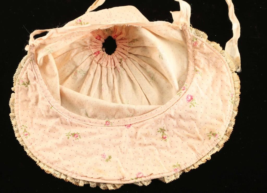 Cotton Floral Fabric With Full Beaded Rim Beadwork Is Purple And White.