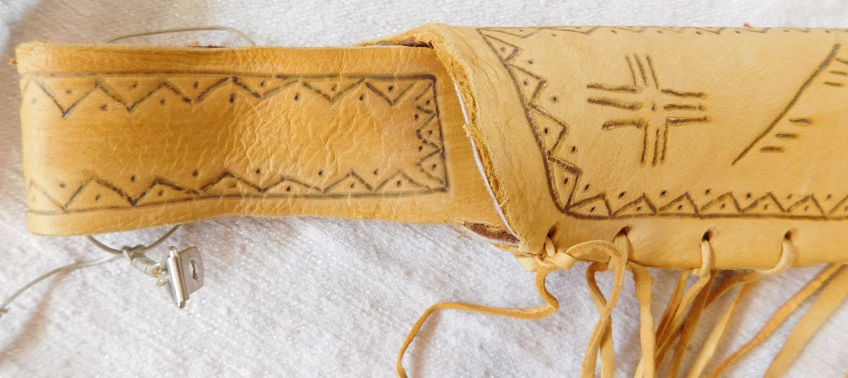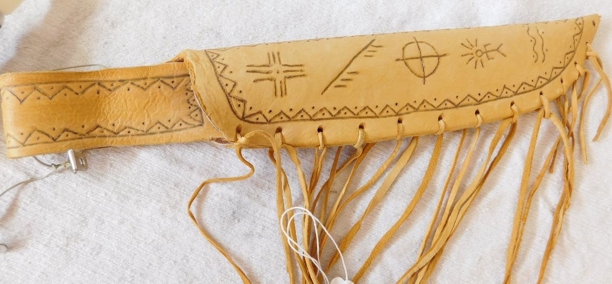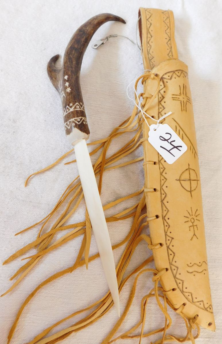 Plains Bone Dagger & Sheath, 20th century item. Made of bone and leather, this item measures 16" x 3". From the Southwest USA. Not a toy! Very deadly! Condition: Very good, see images. Shipping: $24.50 due to length.