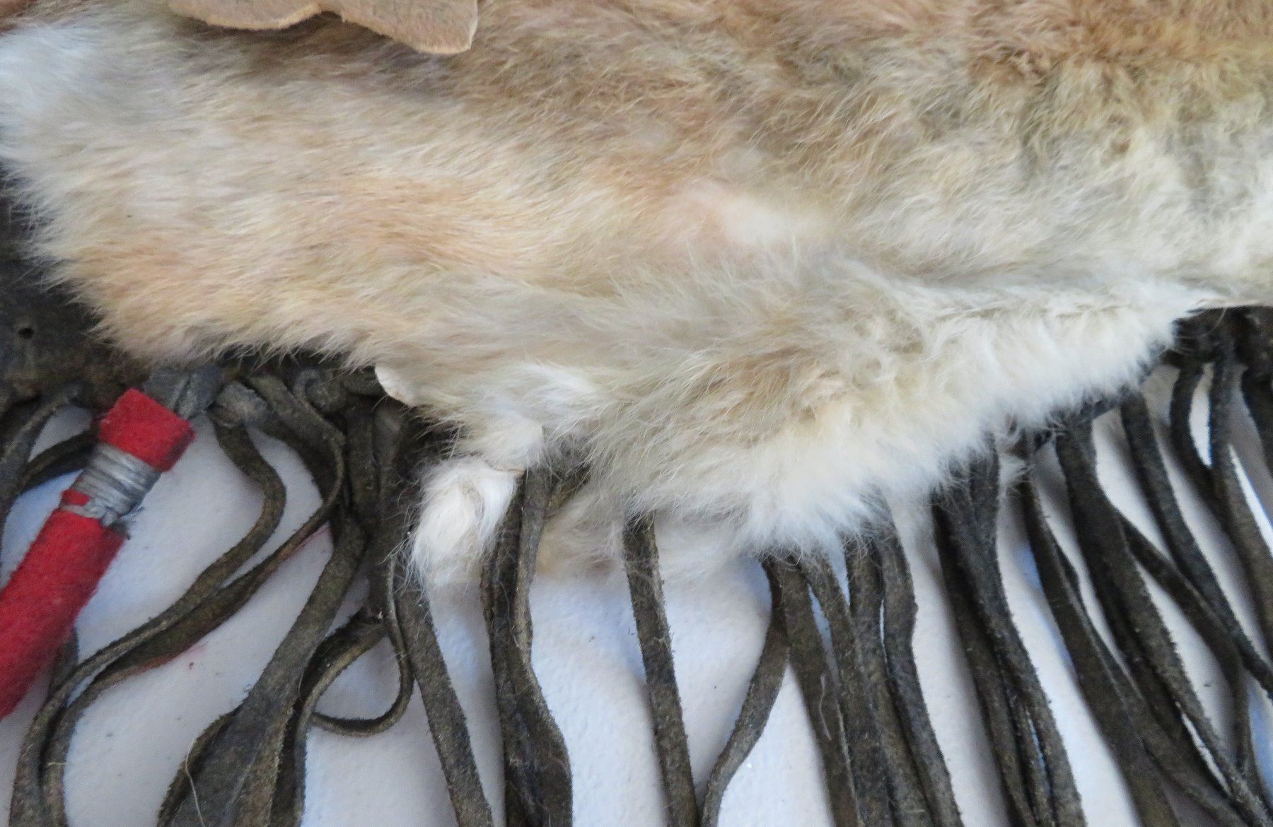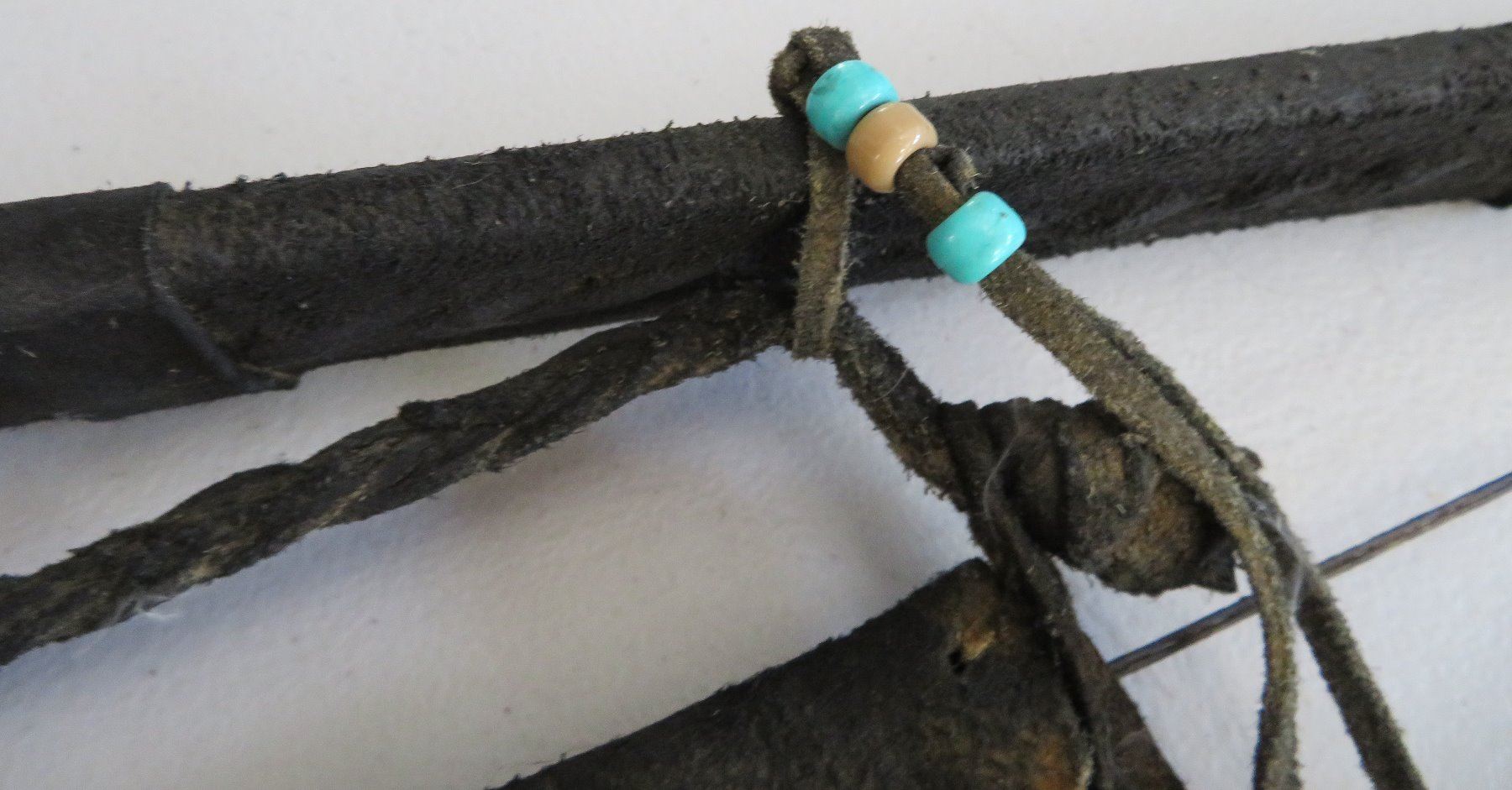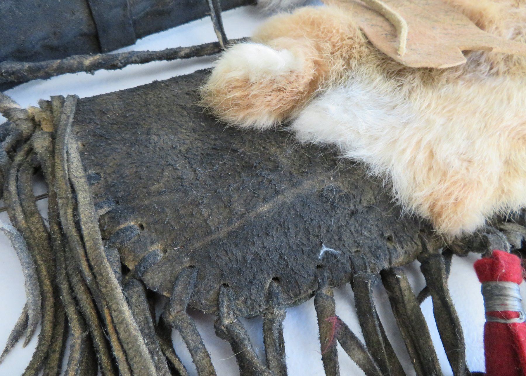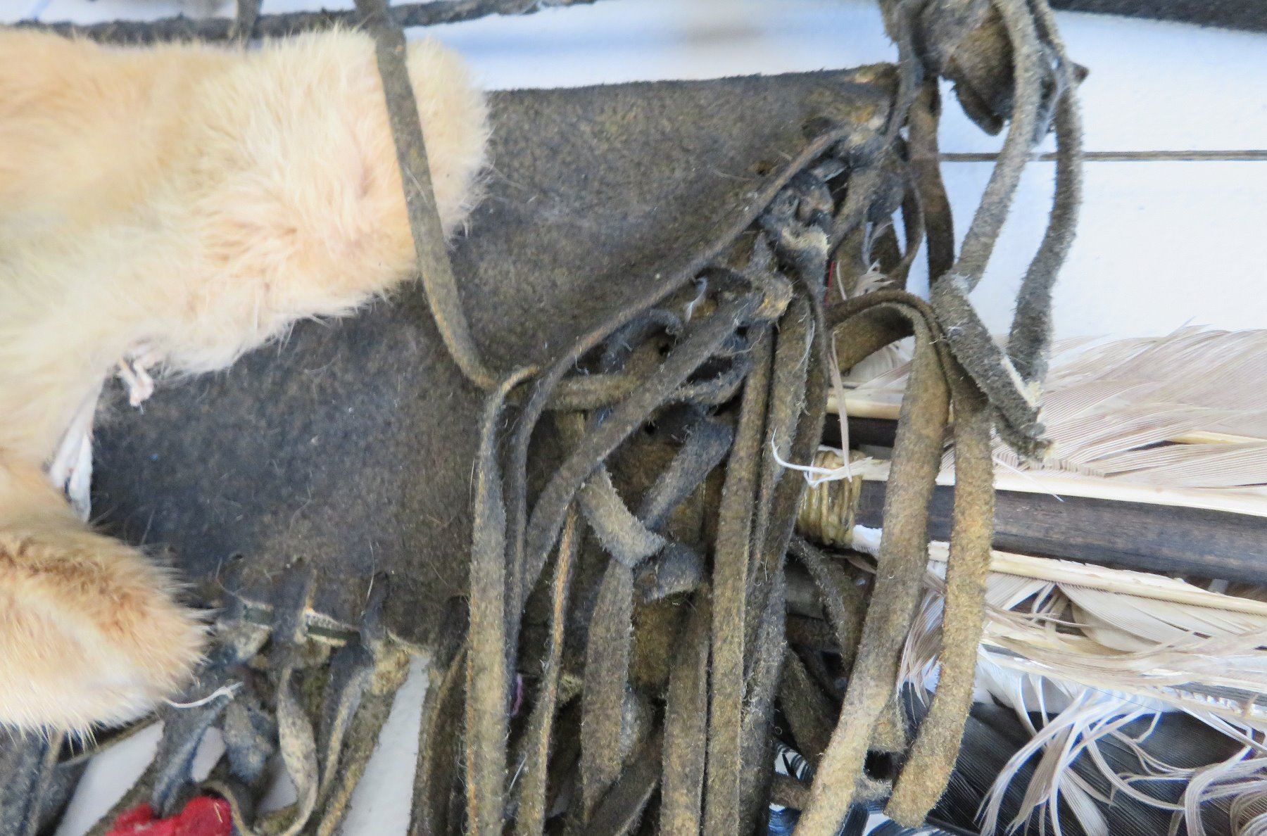 Plains Bow & Arrow Set, 20th century items. Made of wood, arrows with feathers, buckskin quiver, the overall length is 47" x 1 1/2". Plains, Sioux. Condition: Good, some signs of wear, see images. Shipping: $60.00 USA estimate only, due to size and weight, w/insurance and signature.