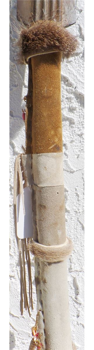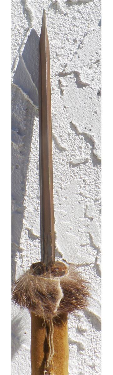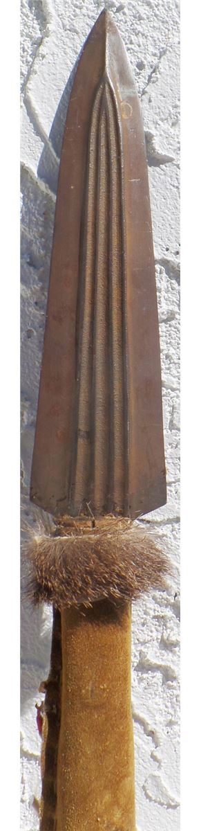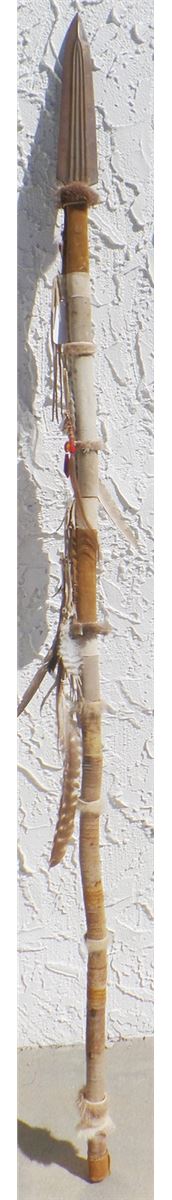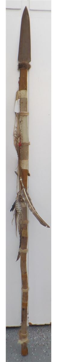 1950's Plains Buffalo Lance made from steel, wood, leather, fur, beads and feathers. It is Northern Plains, possibly Sioux. The item is 73 x 2 1/2 x 1 12 inches. There is some rust on the spearhead which measures 10 x 2 1/2 inches. The spearhead is similar to those traded at the Hudson Bay Co. Shipping: 39