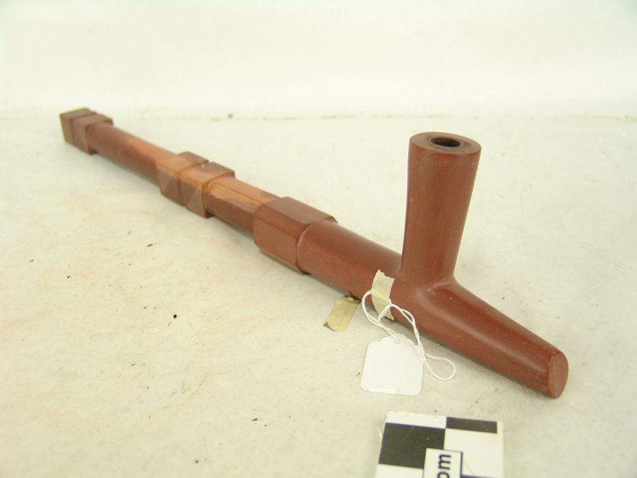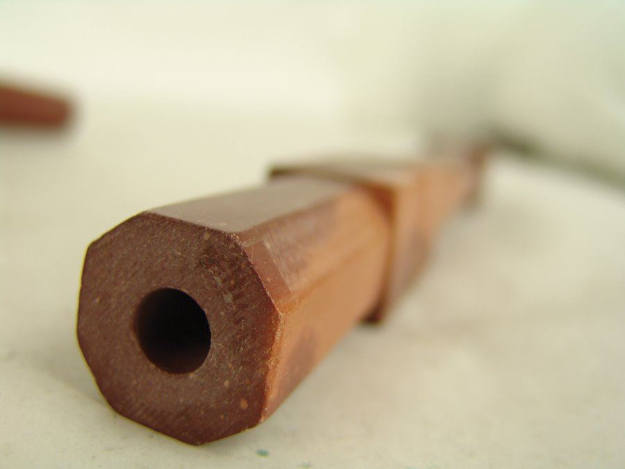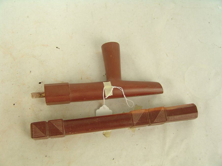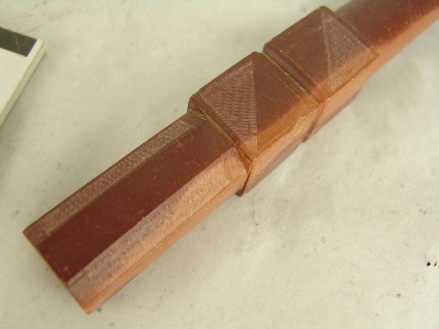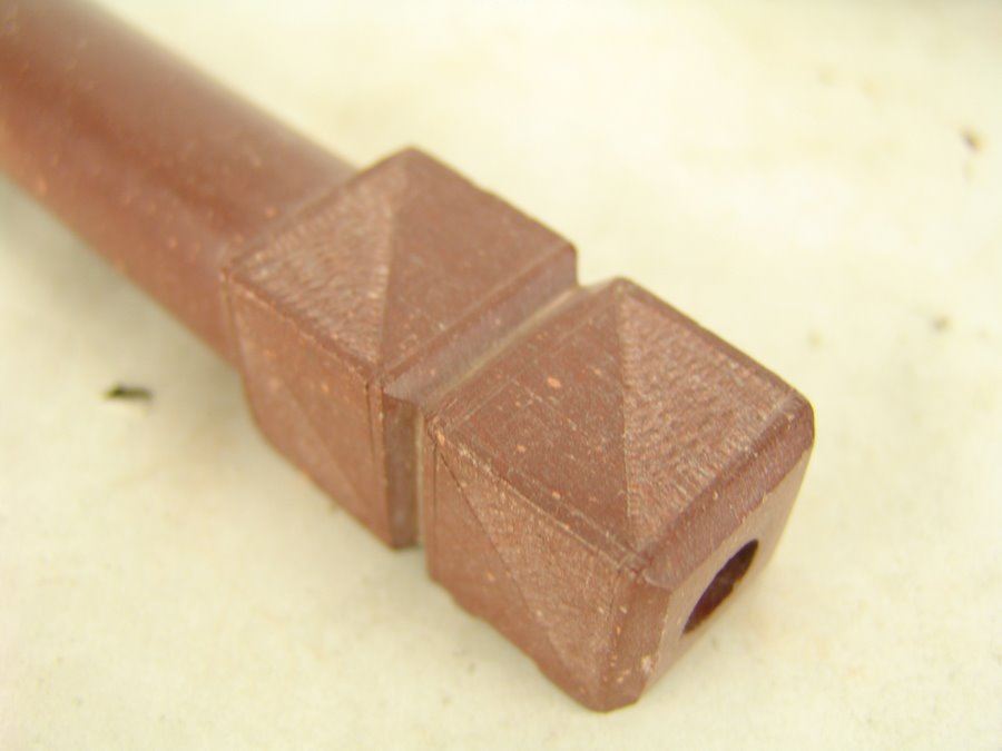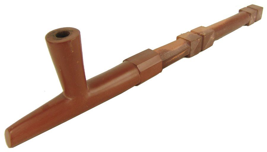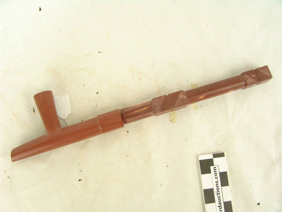Beautiful hand carved T-Bowl pipe head with eight sided butt, plus a matching octagon stem with cubed sections and etched accents in several places. Very good condition. A great visual example.,,19"