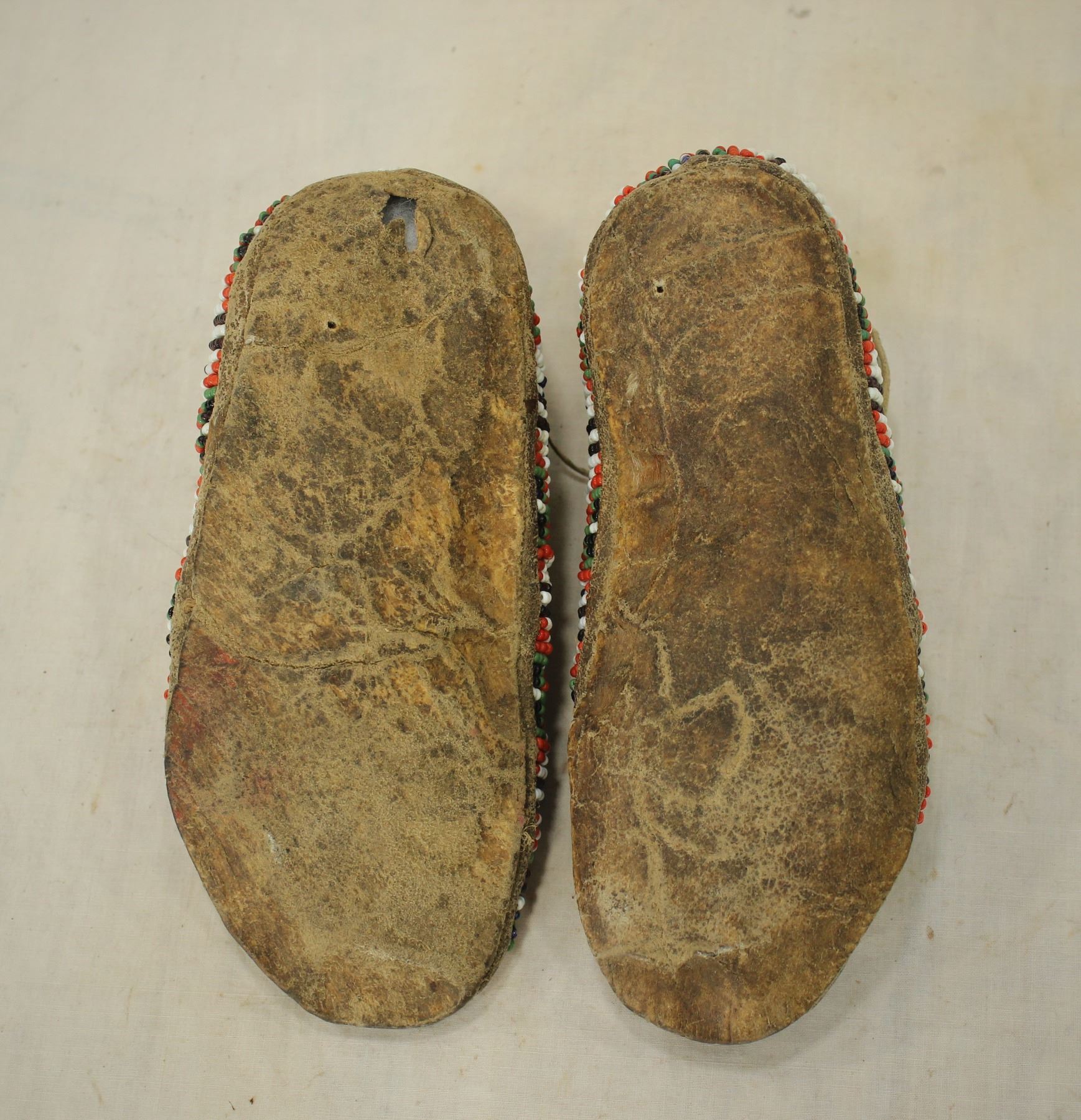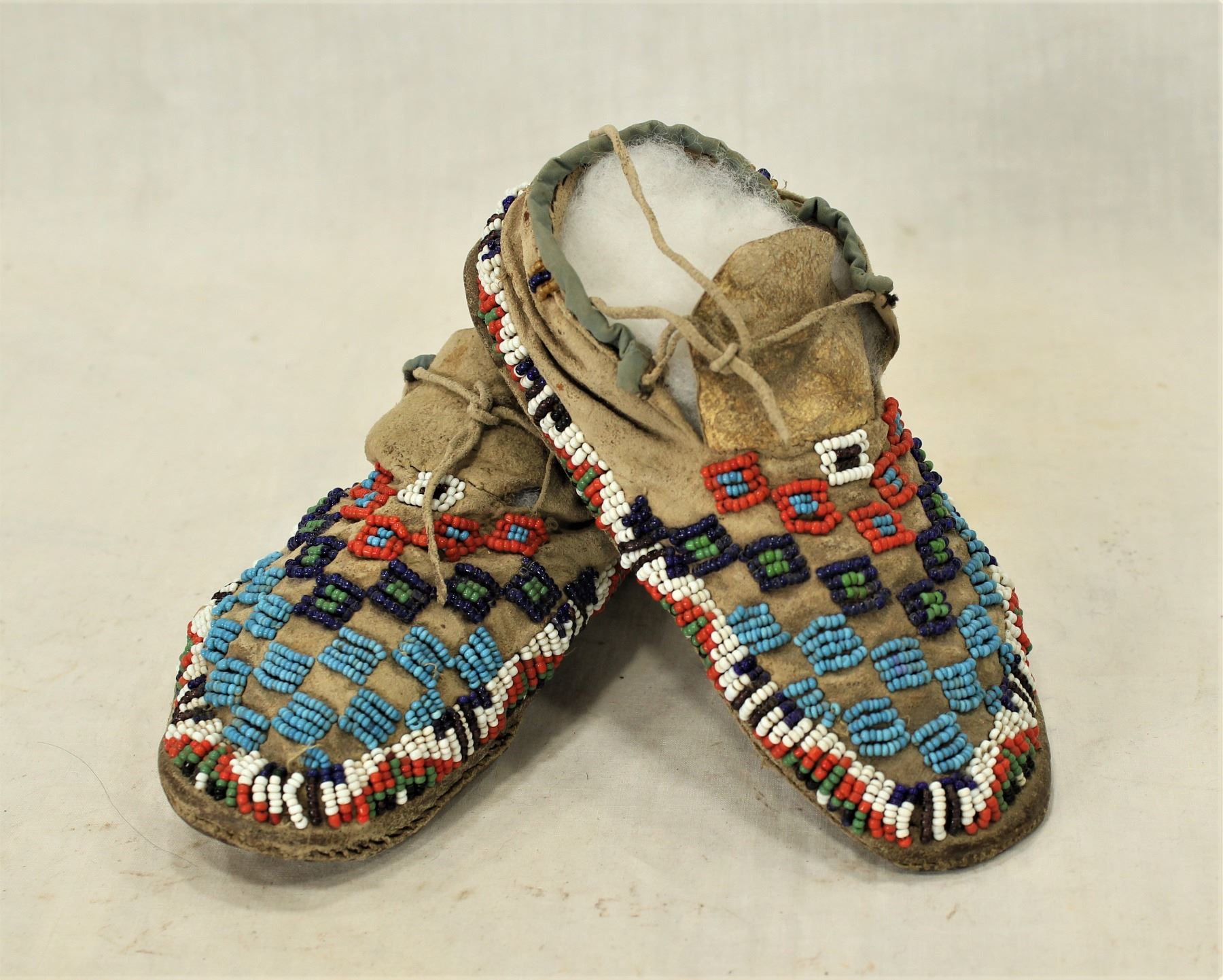From a private South Dakota collection, an untouched pair of child's moccasins with nice checkerboard beaded pattern. Circa 19th Century.