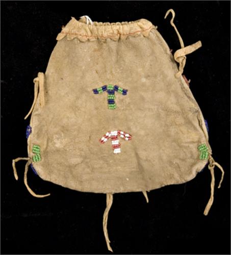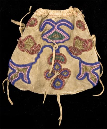 Plains Cree Pouch. 6" x 6 1/4". Beaded on both sides. Abstract floral designs on front. 19th century. Excellent condition. (est $400-500)