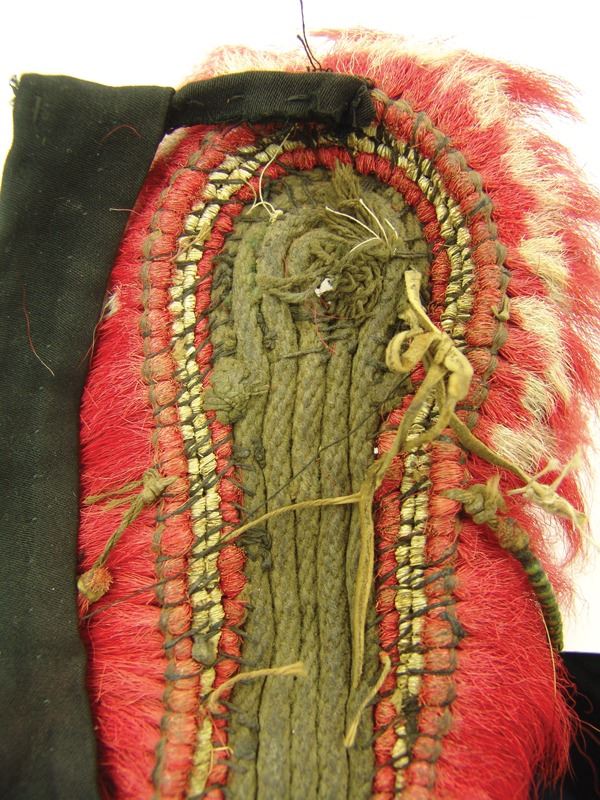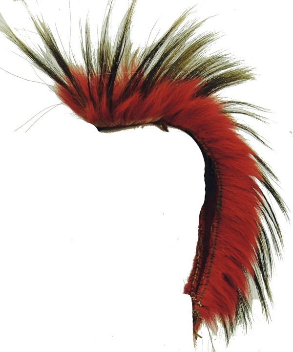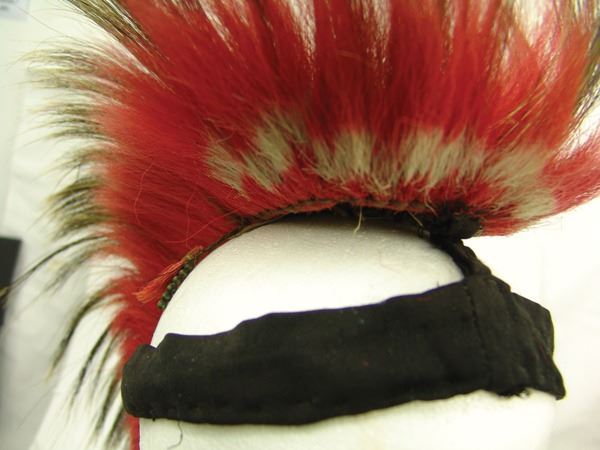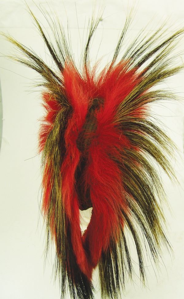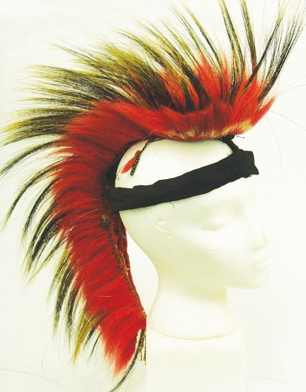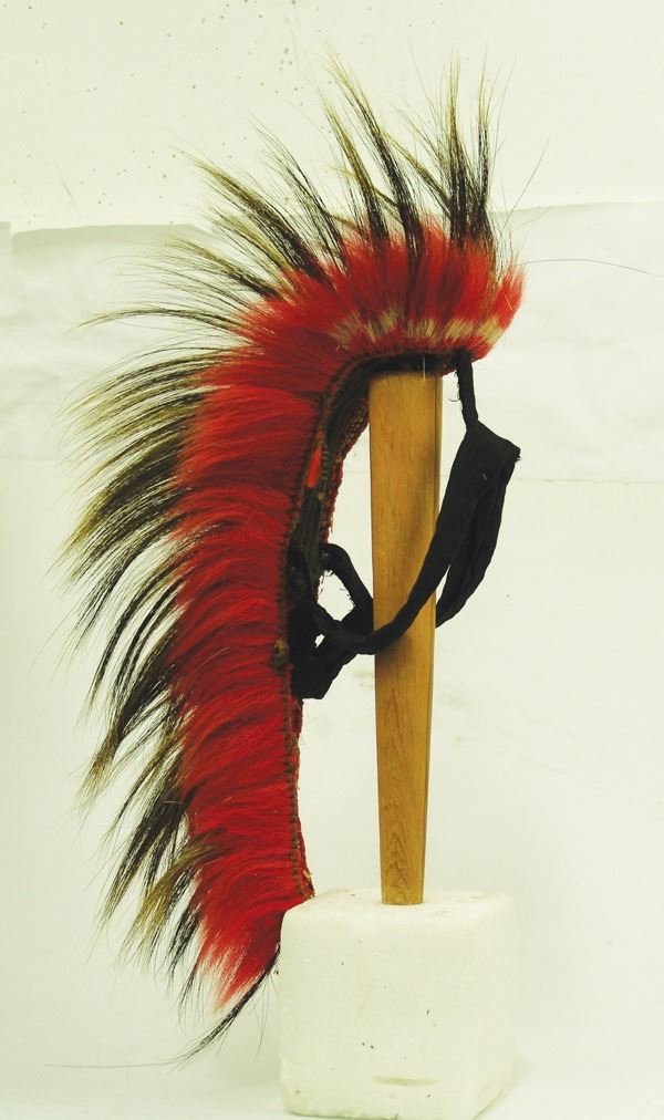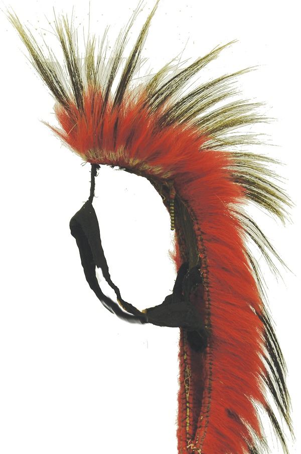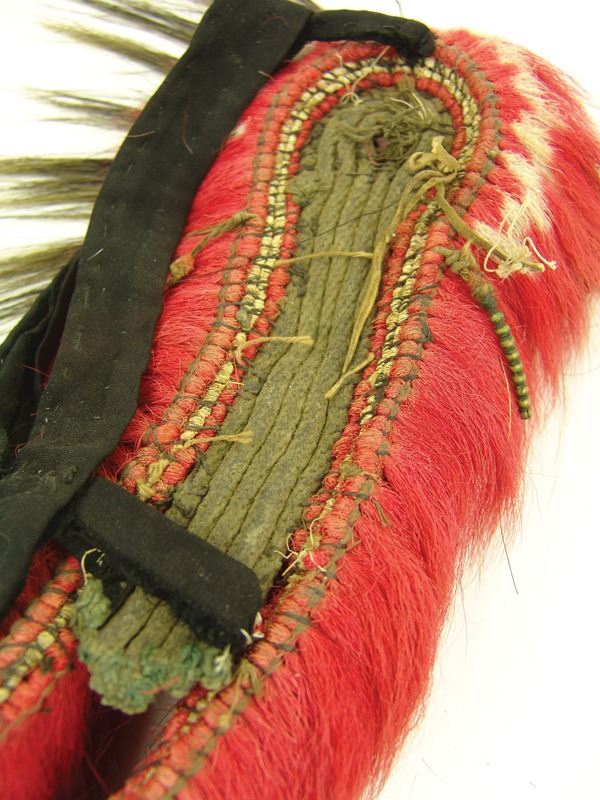 Classic, hand-tied porcupine hair head piece with unusual, cord base. Good condition. A rather large, older example.Early 1900s16"