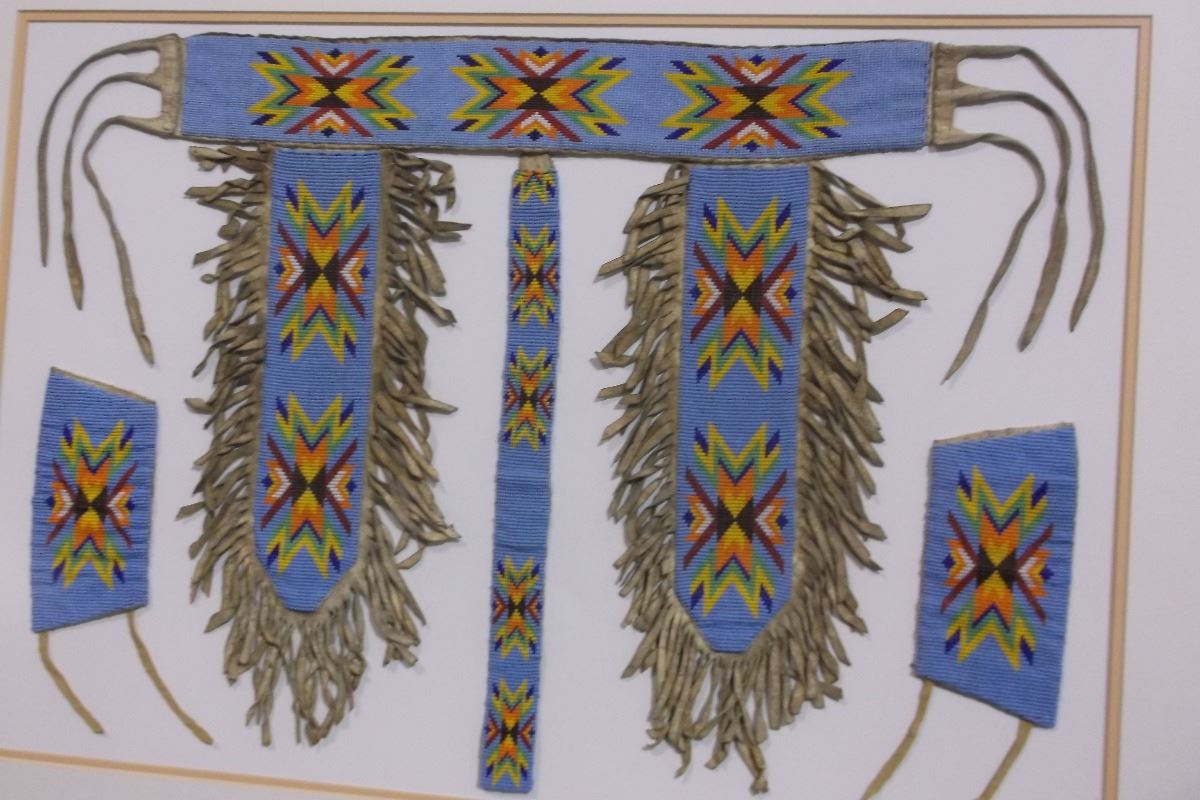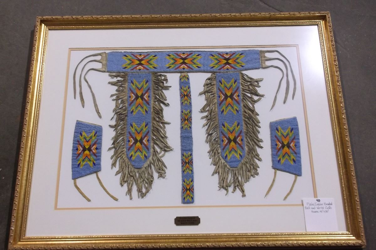 Plains Indian Beaded Belt and Wrist Cuffs- Frame 40" X 30"