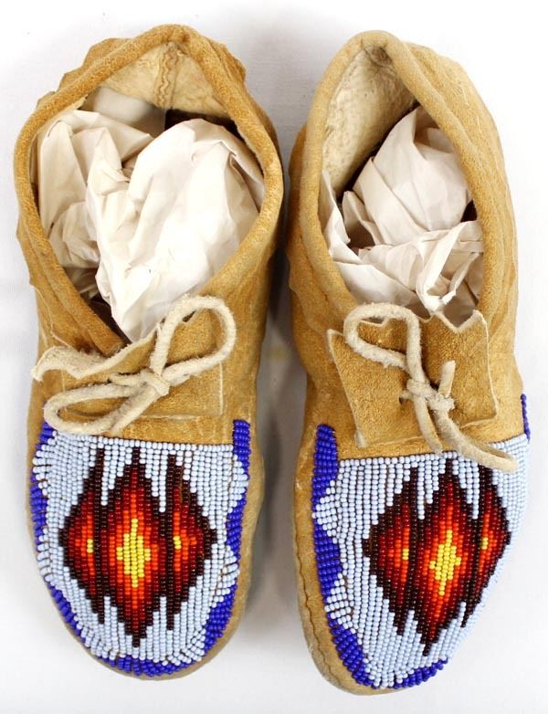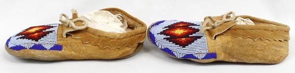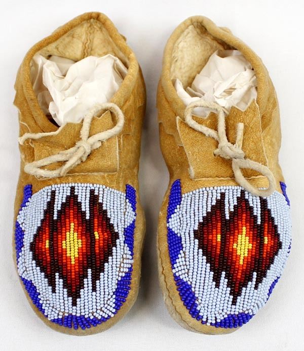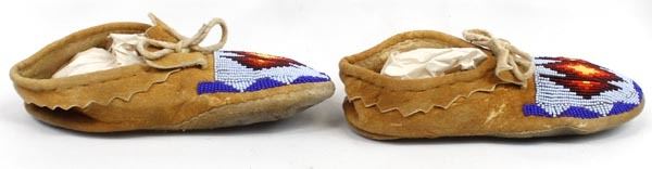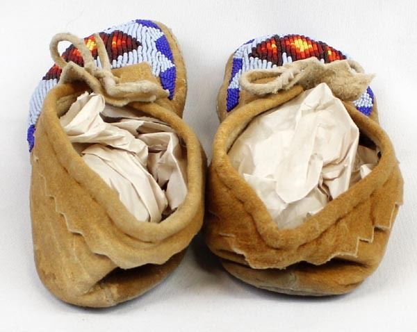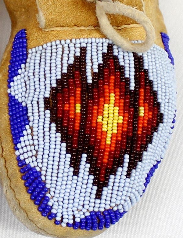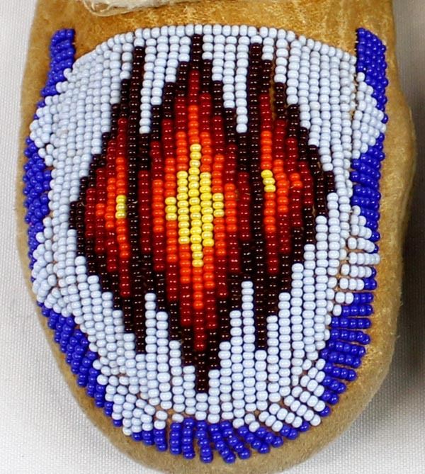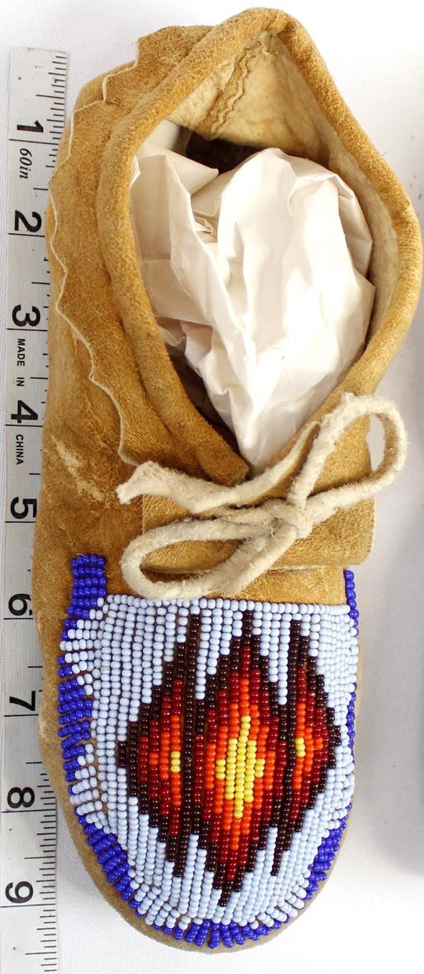 Native American Plains Indian Beaded Moccasins, measures 4'' x 10'', gorgeous warm and cool colors