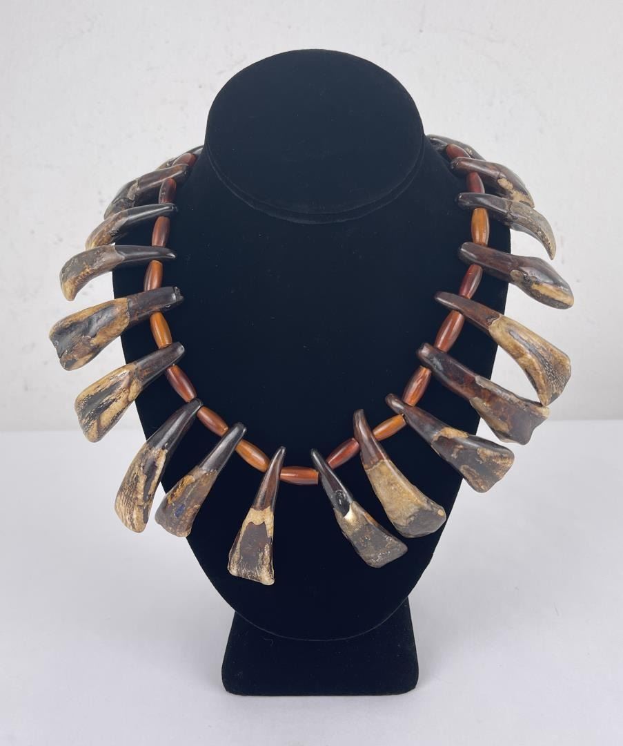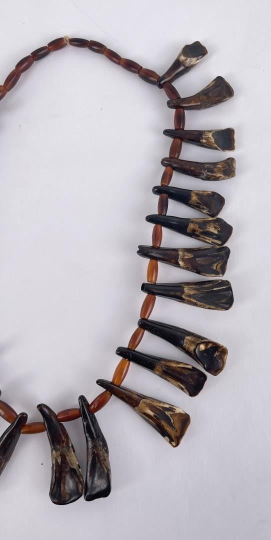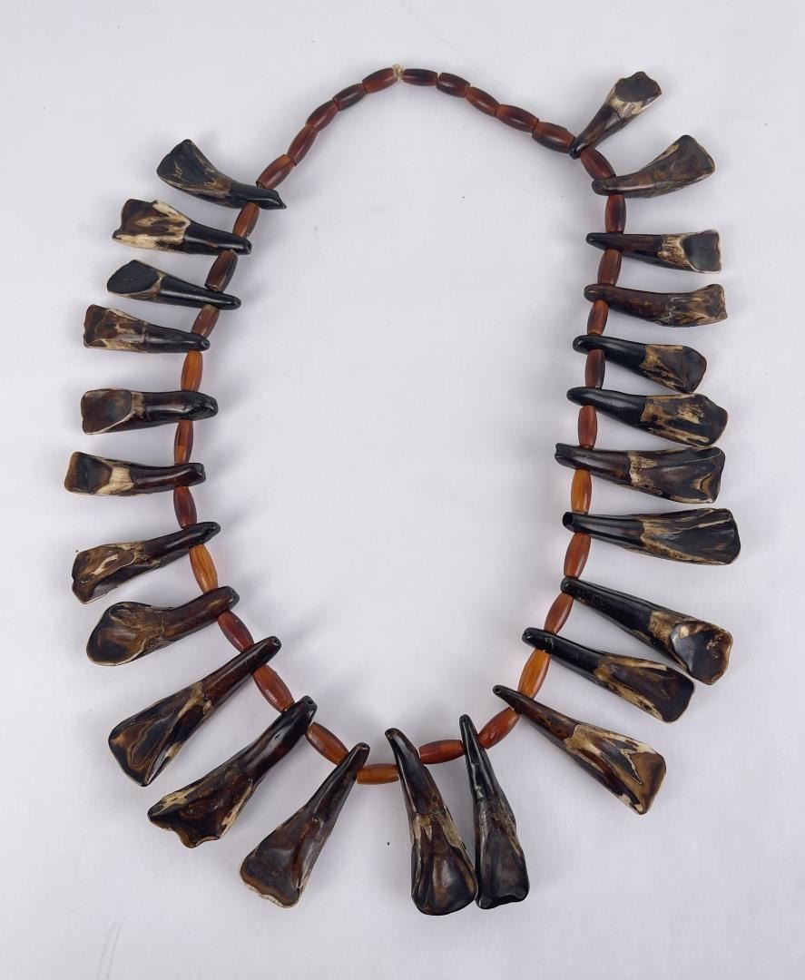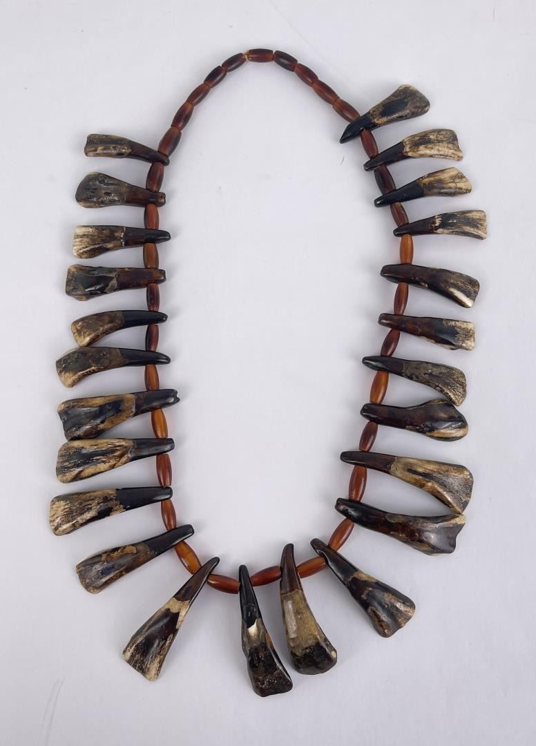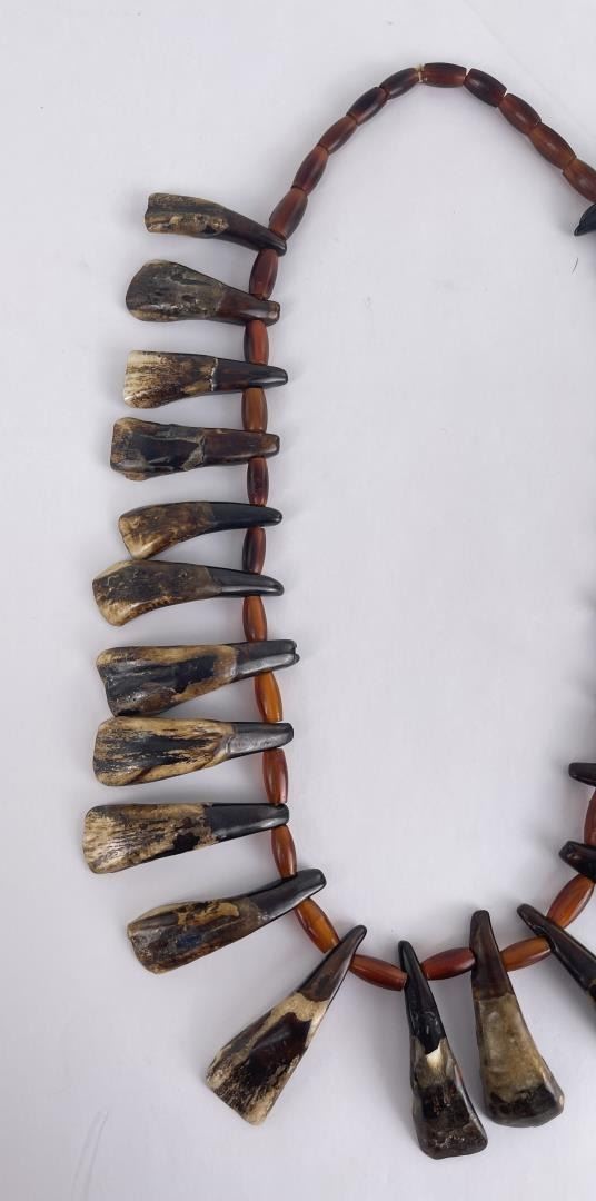Buffalo Tooth and Bone Hair Pipe Beads.