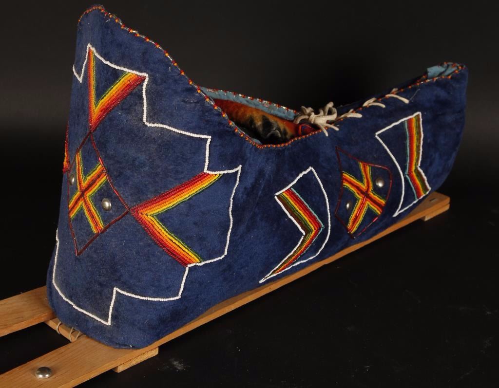 Blue velvet construction with cross and geometric design. Made in the last 60-80 years.