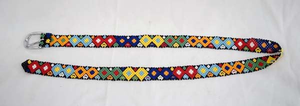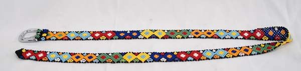 Plains Indian Fully Beaded Belt, measures 36.5'' end to end, buckle measures 1.5'' x 1.5'', belt is 1''W