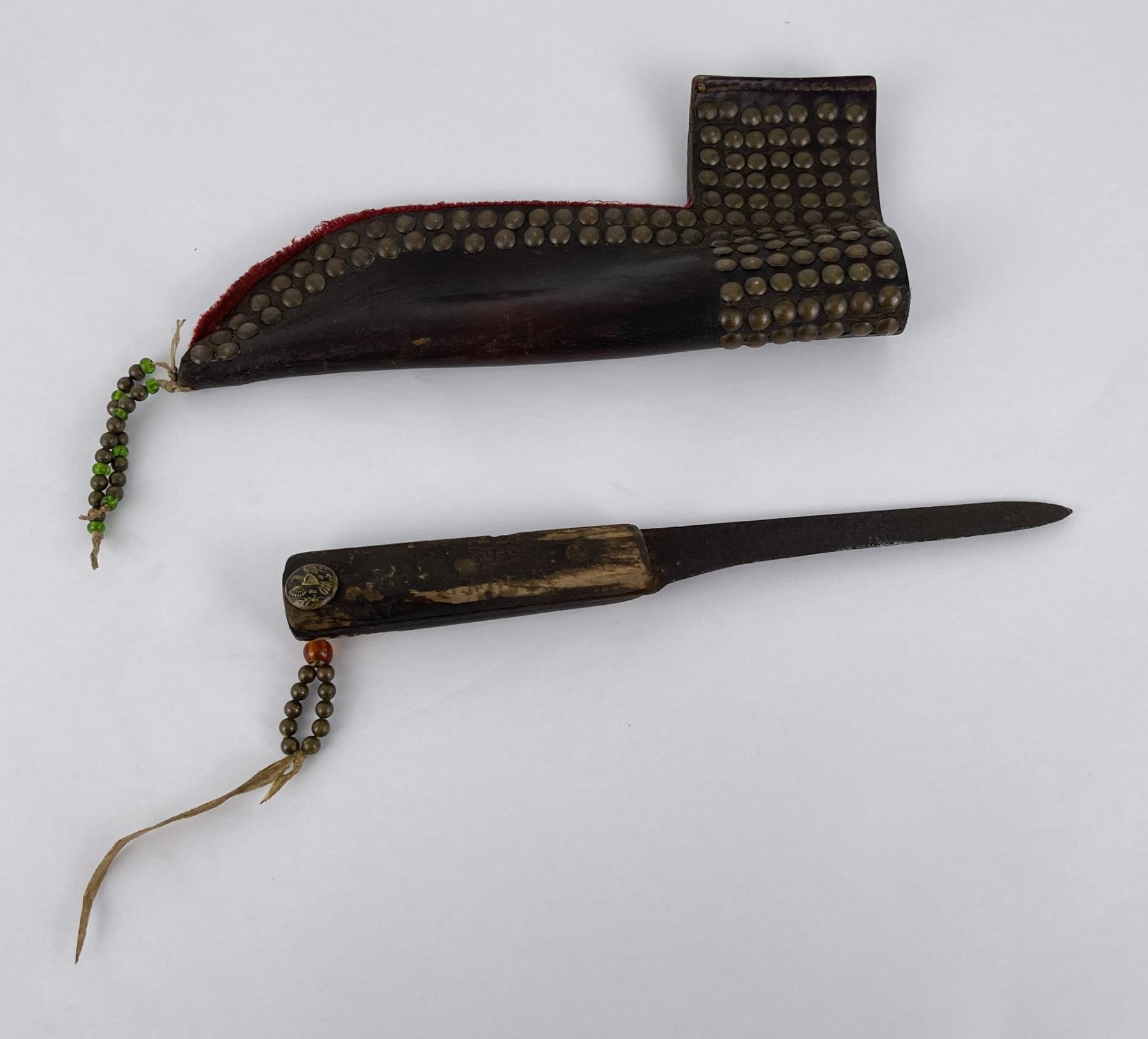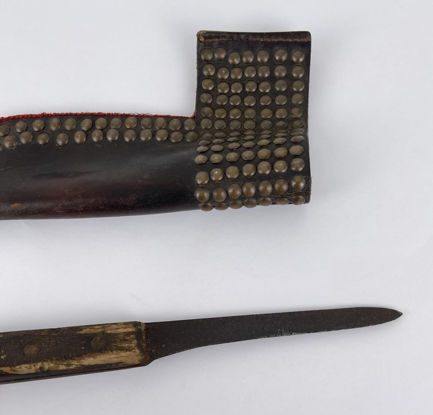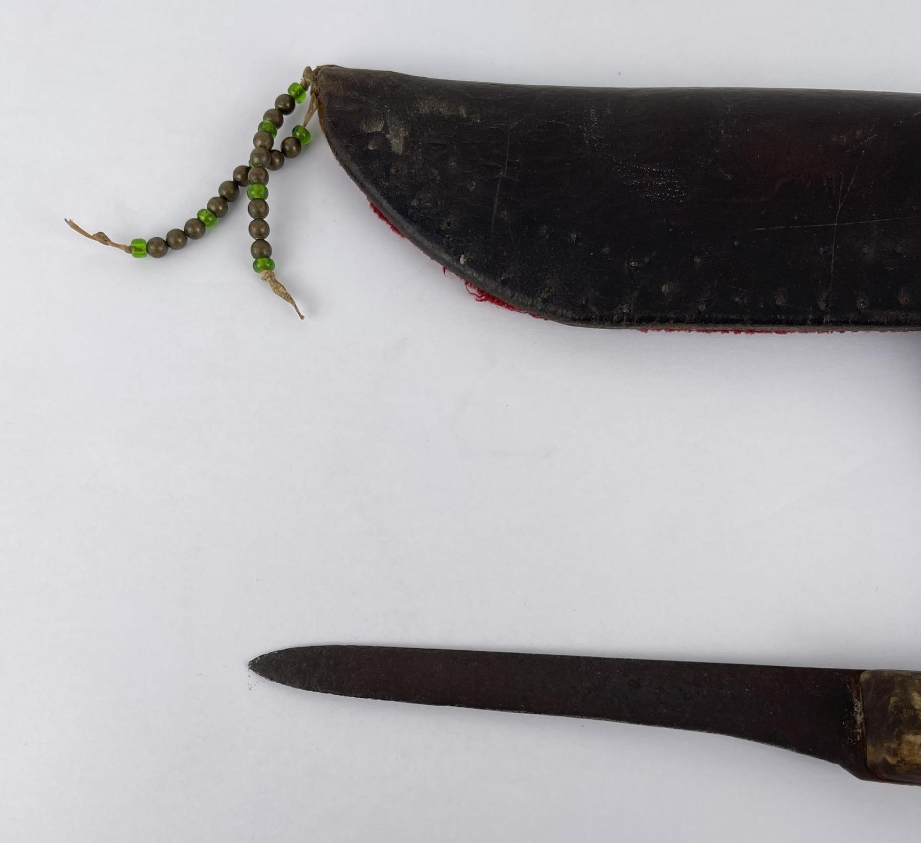Knife has a US Army Scout Indian Wars Button on it. We believe it to be made in the second half of the 20th Century.