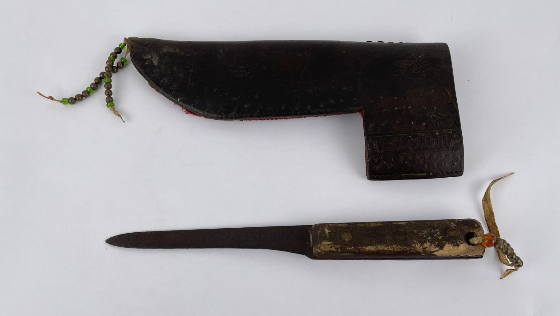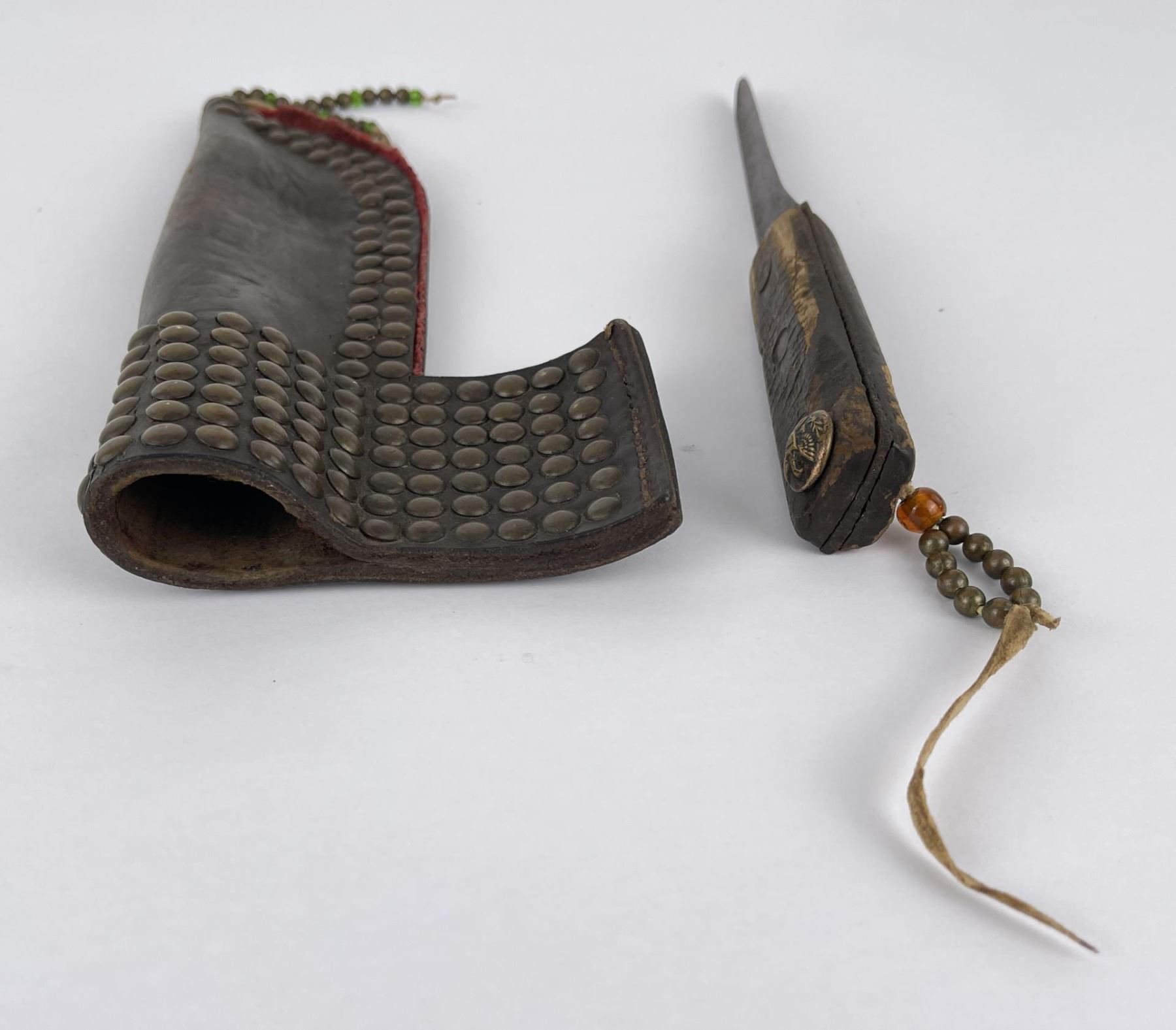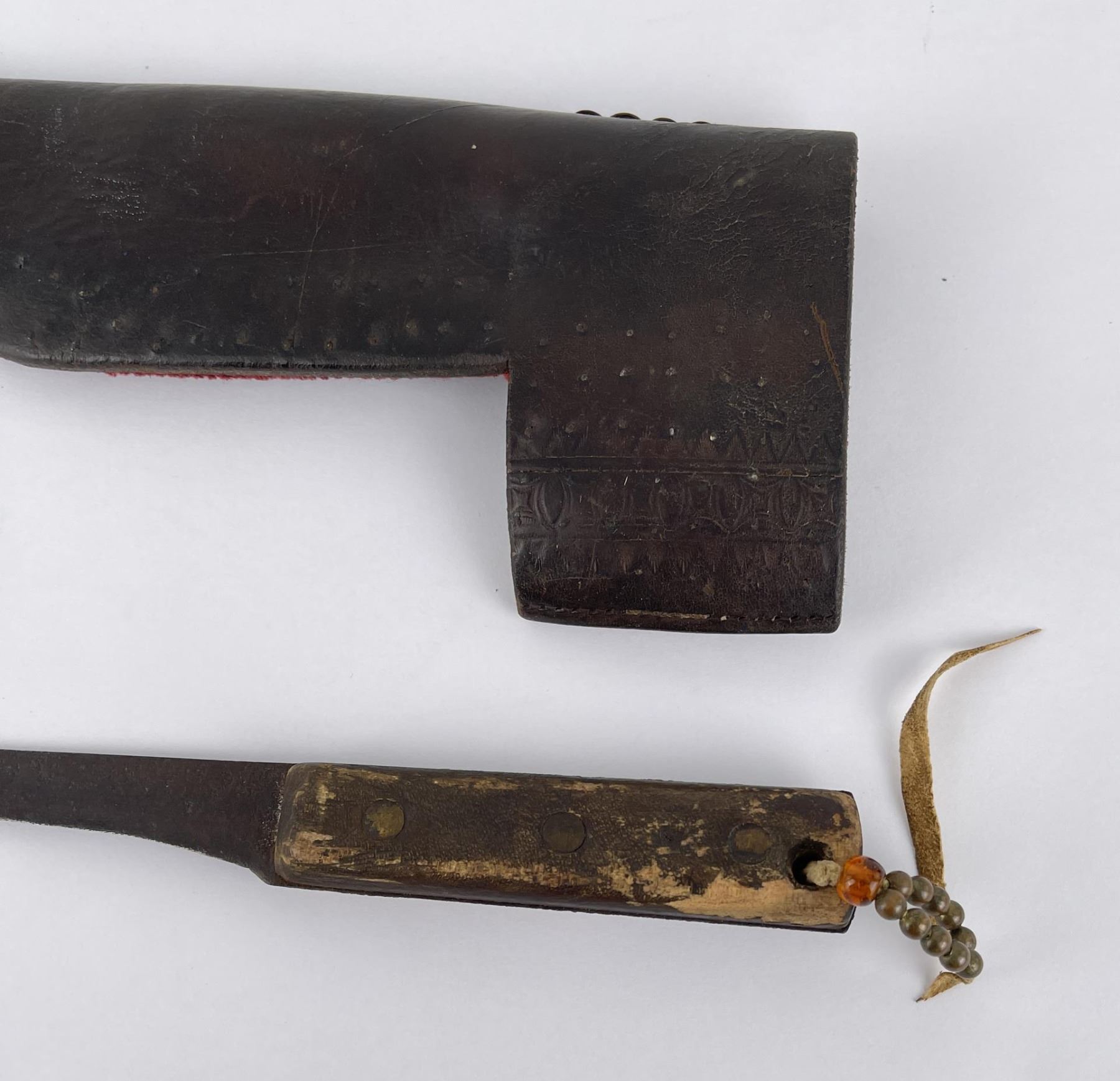 Knife has a US Army Scout Indian Wars Button on it. We believe it to be made in the second half of the 20th Century.