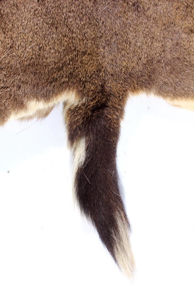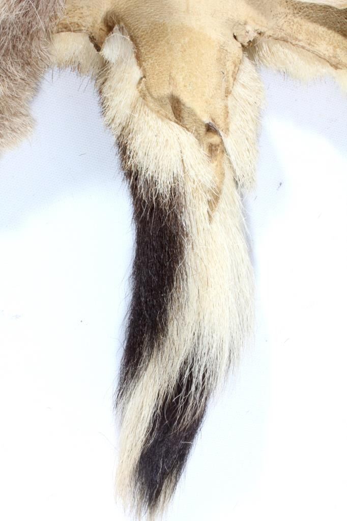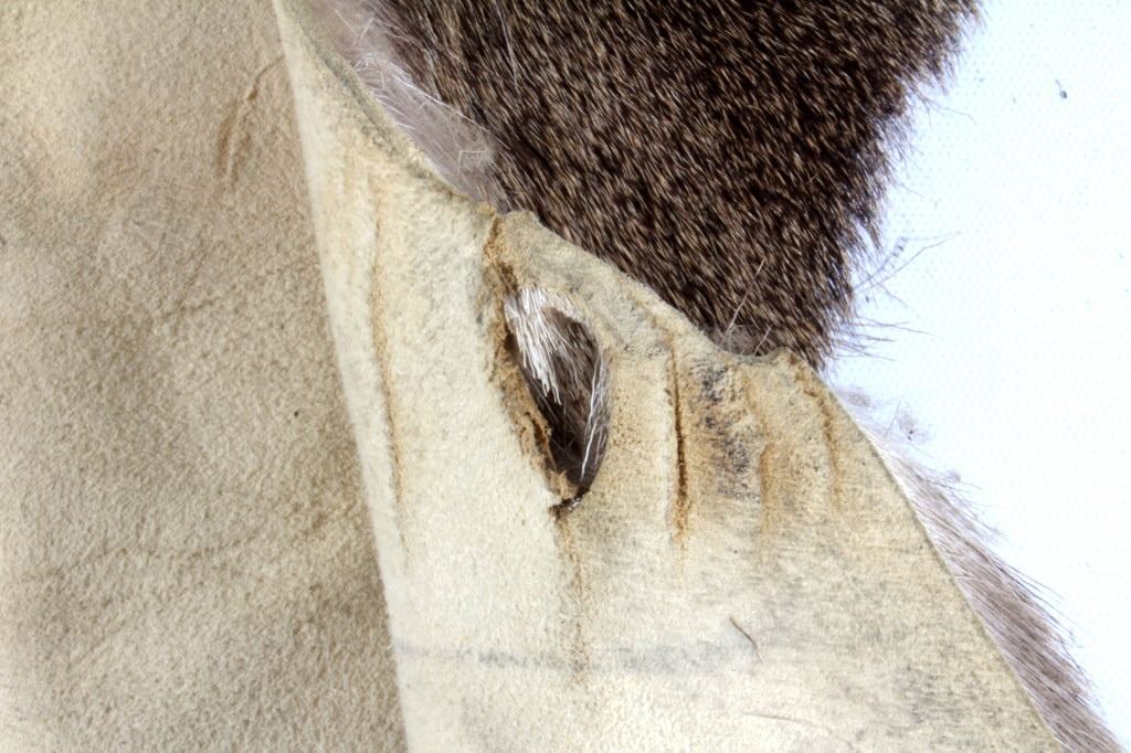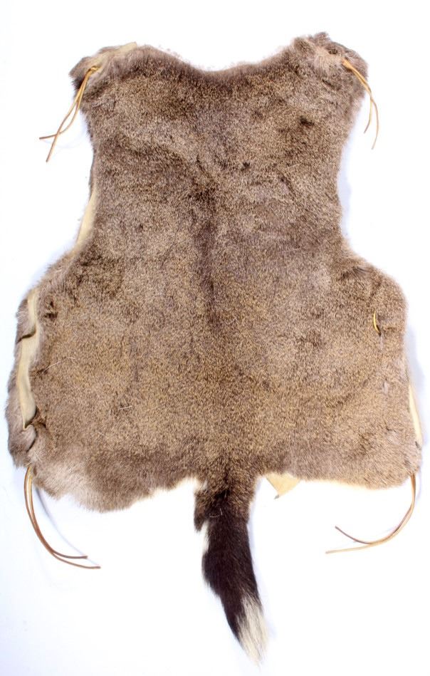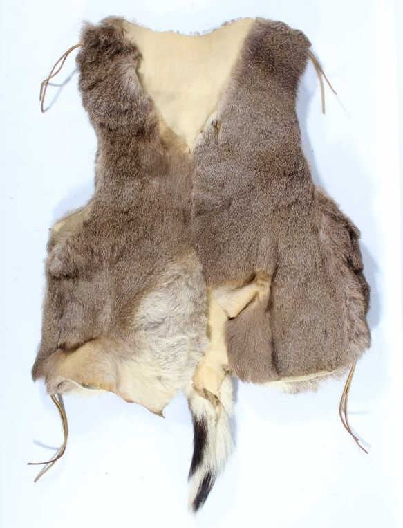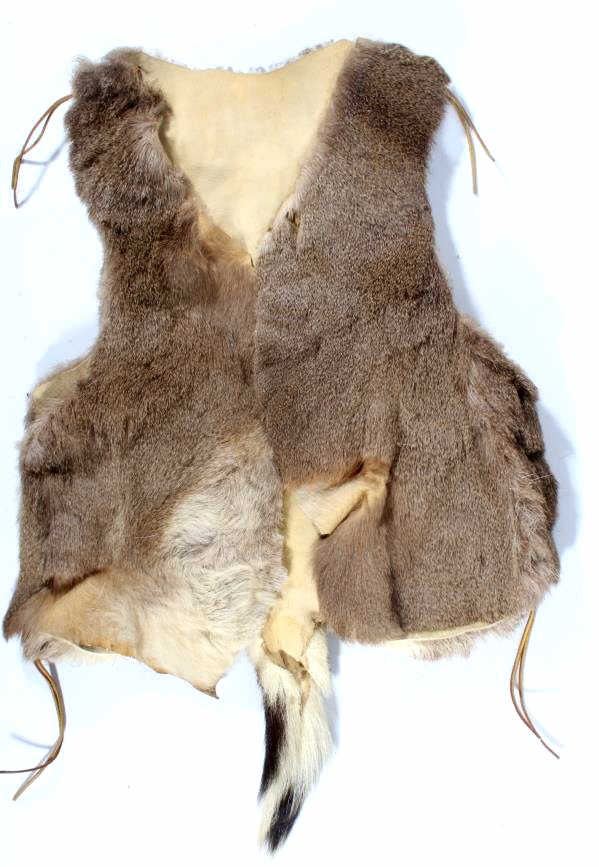 For your consideration is this Plains Indian tanned deer hide vest. The vest consists of three panels loosely fastened together with rawhide leather lace. The middle panel features the tail extending down from the center. The vest is made to be worn open as it has no fasteners. The size is about a small. It measures 14" shoulder to shoulder, 24" shoulder to waist; the tail in back extends about 9" below the waist. The vest is in very good condition