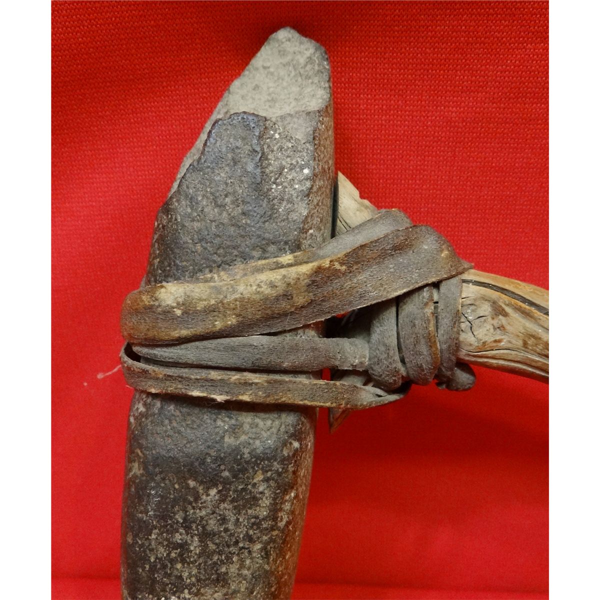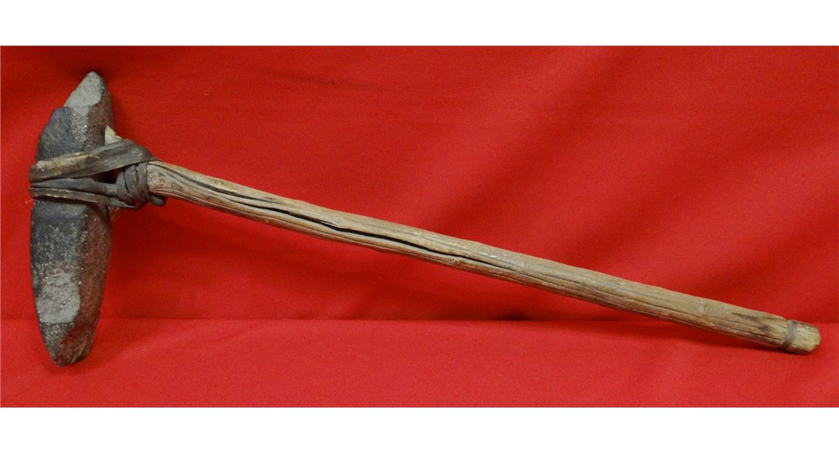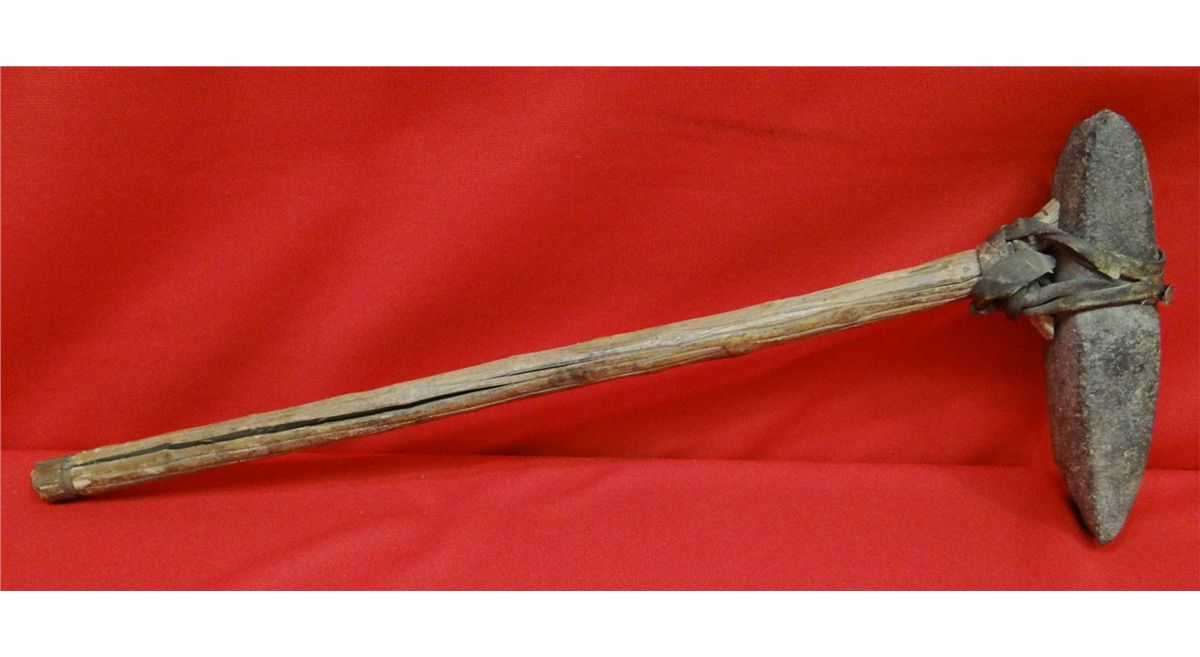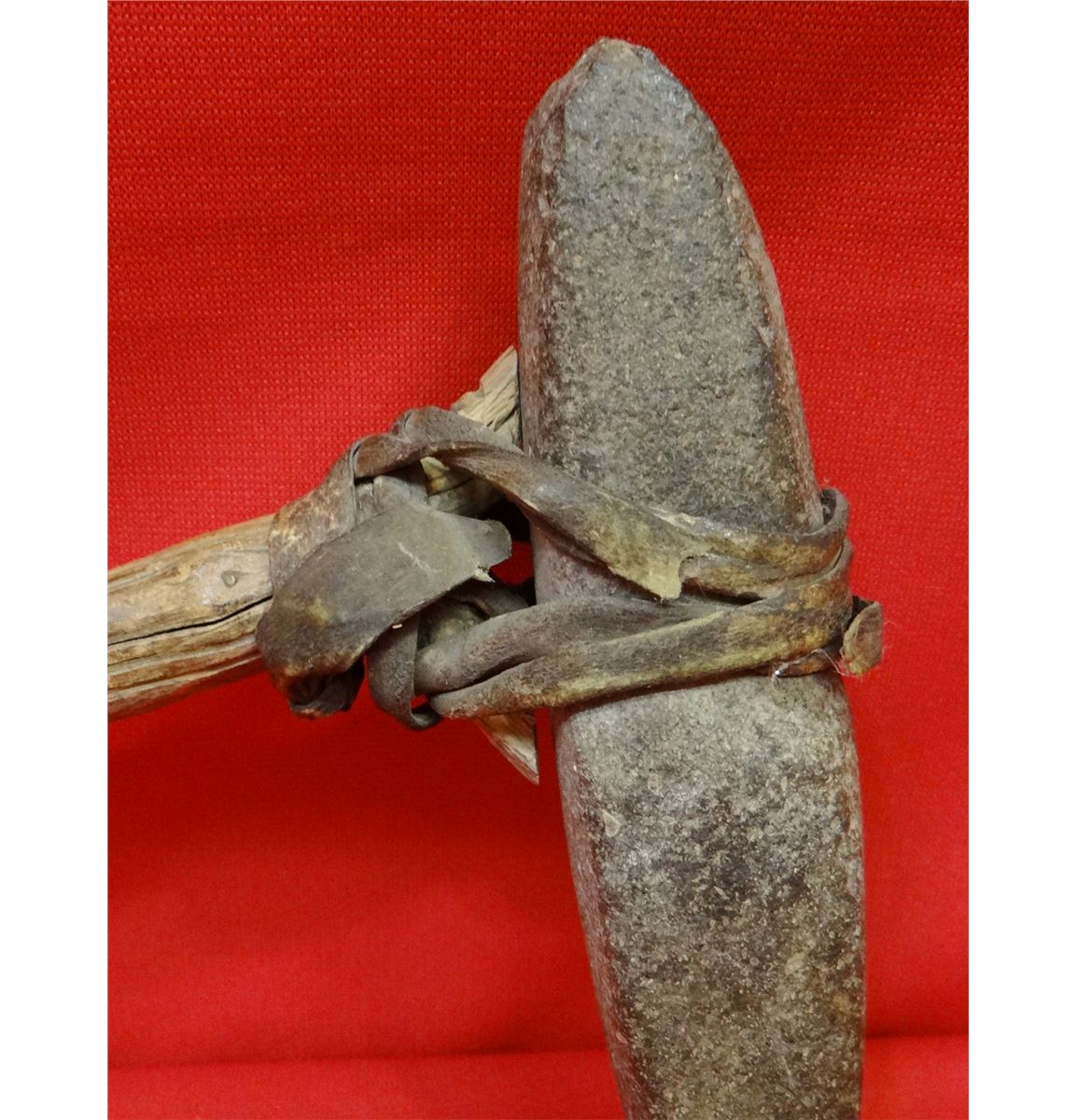 Plains Indian war club, some chips, wooden handle, age unknown, Cheyenne Butte area, Rosebud, MT
