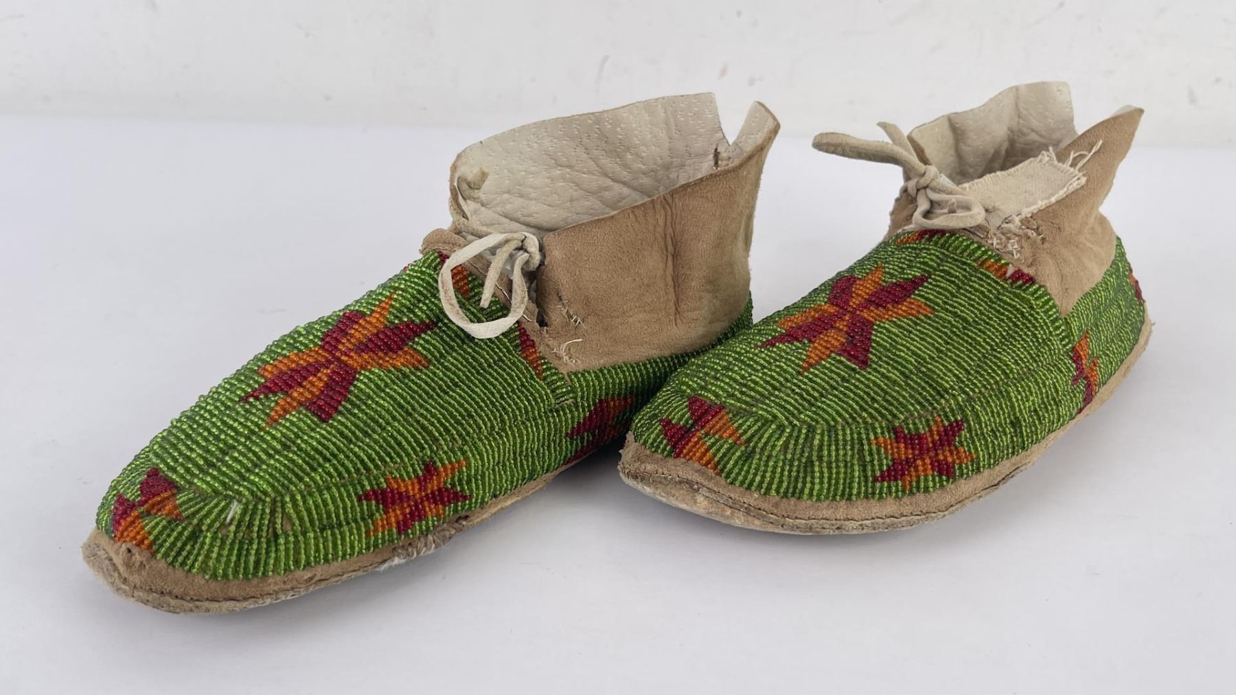 Nice pair of Moccasins. Second Half of the 20th Century. 9.5" long, 3.75" wide.