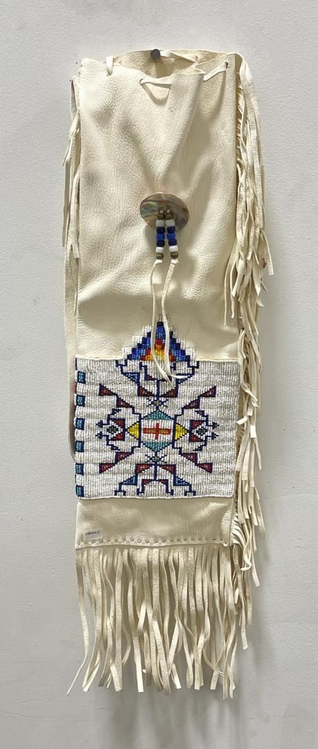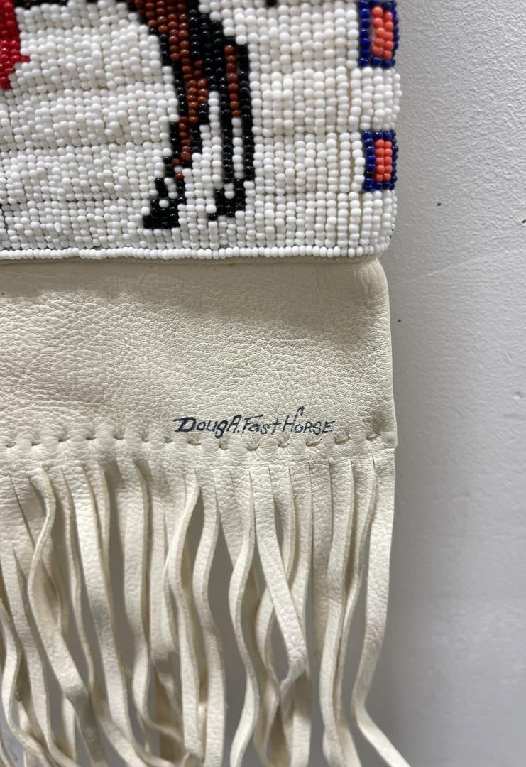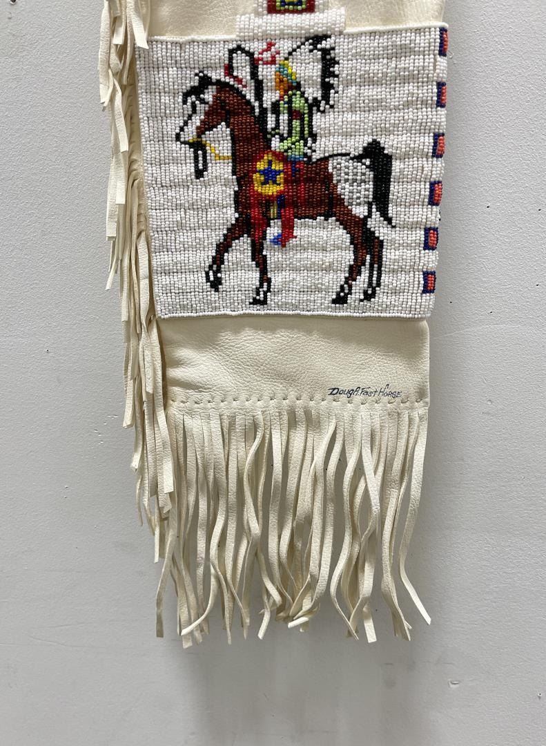 28" long including fringe, 7 1/2" wide. Second half of the 20th Century. Signed Doug A Fast Horse. Allard Auction Collection Inv: RAH 24650
