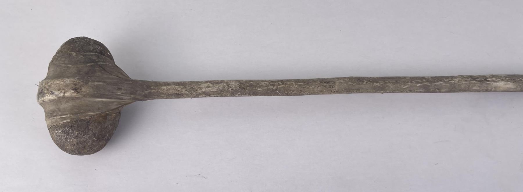 Stone head, leather wrapped shaft. First half of the 20th Century. 35" long.