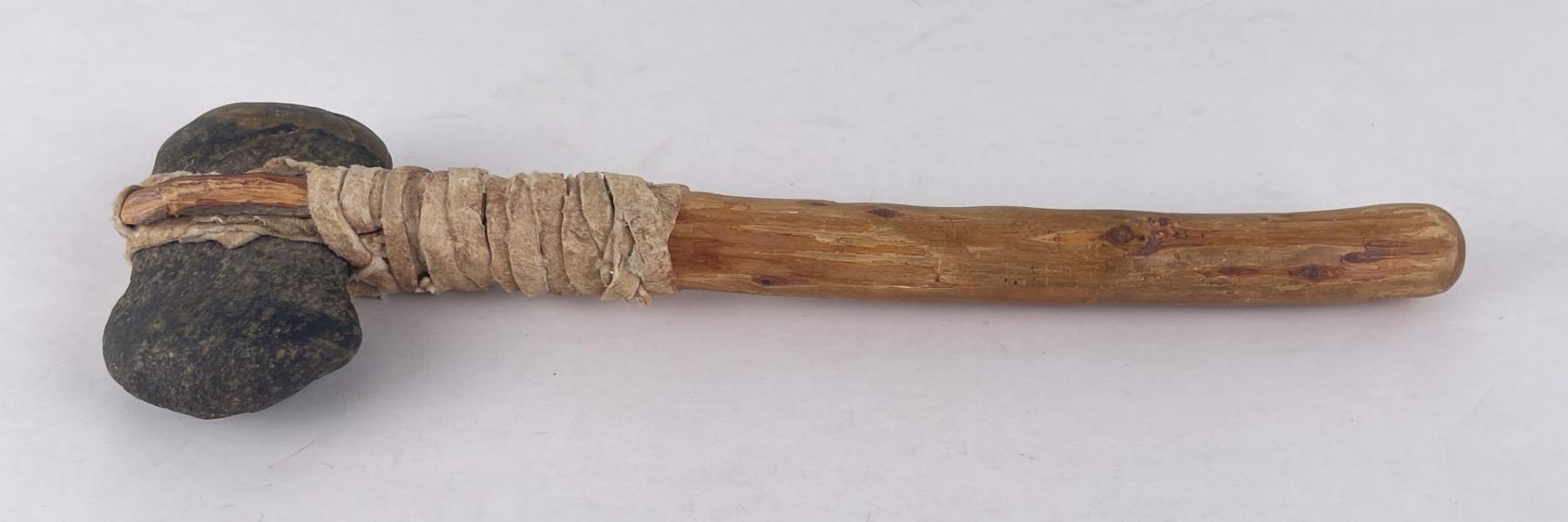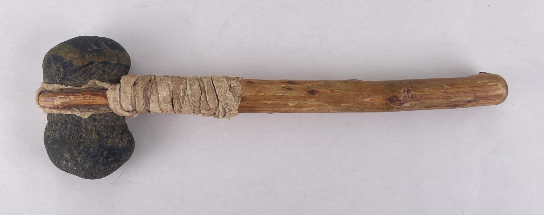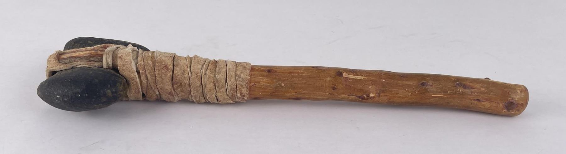 Nice axe or club. I believe the blade/head is quite old and was later re-handled. 15 1/2" long.