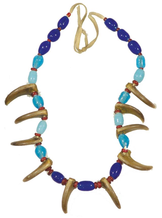 Circa 1970s, Rare old bear claw necklace with light and dark blue barrel beads. 30"