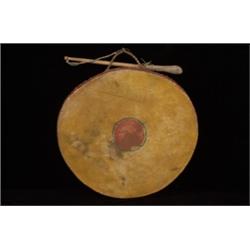 Plains Painted Rawhide Hand Drum with Buffalo Design 19" D. Good Condition