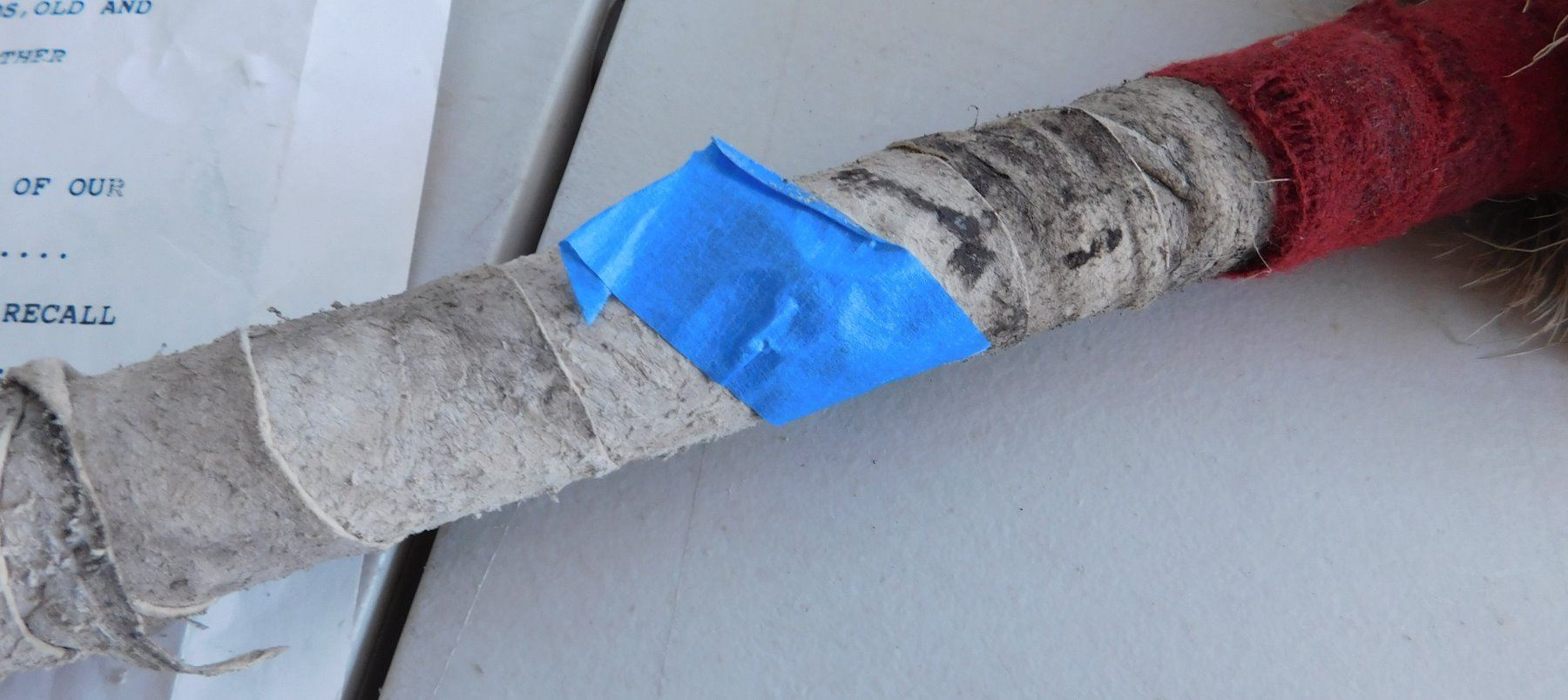Plains Spear, circa 1950s. Made of beads, steel, wood and leather, the item measures 2" x 55.5" long. Hootchee Collection. Has certificate. Condition: Worn, some light rust, see images. Shipping: $50.00 due to length and value, w/insurance and signature.