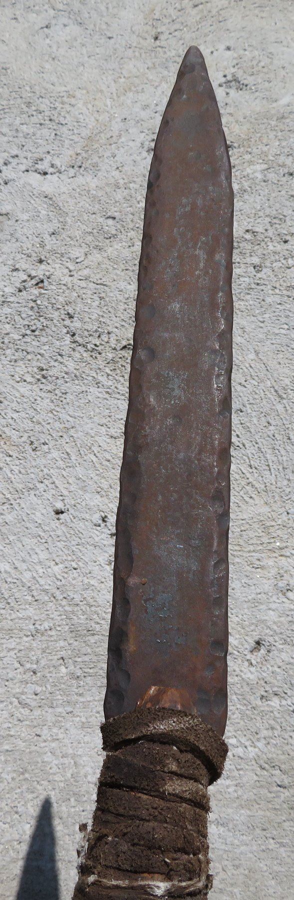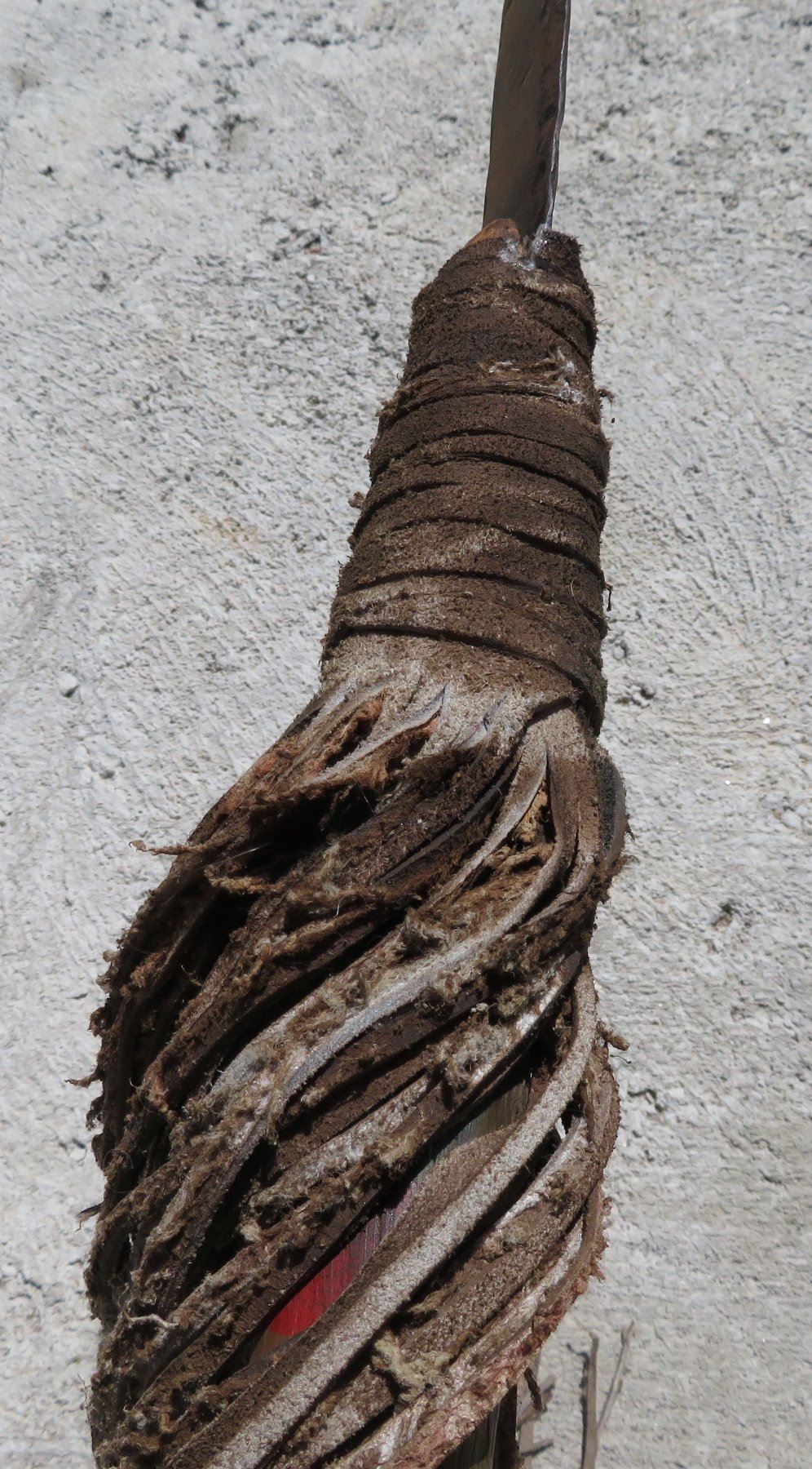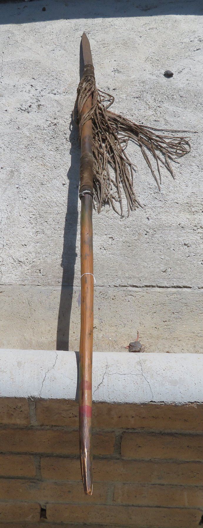 Plains Spear, 20th century item. Made of wood, paint, buckskin, heavy fringe, the item measures 6 feet overall, with a 1 foot spearpoint. Southern Plains, Comanche, Kiowa. Older plains lance with 12" iron spearpoint and banded paint design. Condition: Good, nice patina and some wear, see images. Shipping: $72.50 USA estimate only, w/insurance and signature, due to size and weight.