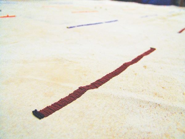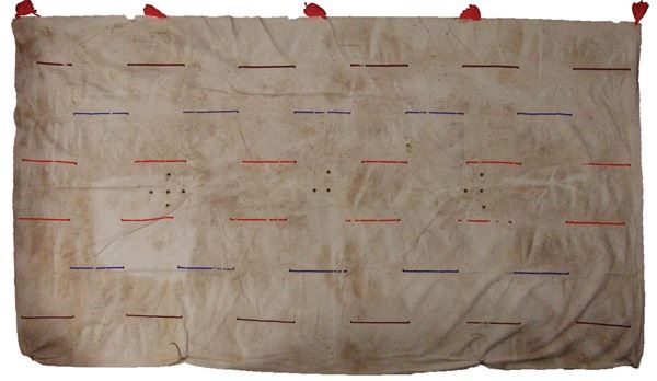 Traditional, hand crafted, heavy canvas tepee liner with multiple rows of lazy stitch beading. In very good, used condition, hangs on the interior for looks, and to provide insulation space.Ca. 1980s10' x 6'