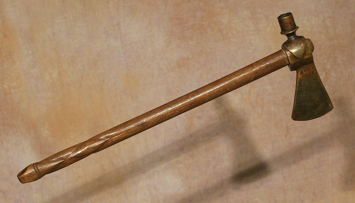 Plains Trade Pipe Tomahawk. 18" beautifully carved haft/stem with 6 ½" brass head. Circa 1860s. (est. $2,000-3,000). CONDITION REPORTS: www.auctioninsantafe.com/docs/cr2012.pdf