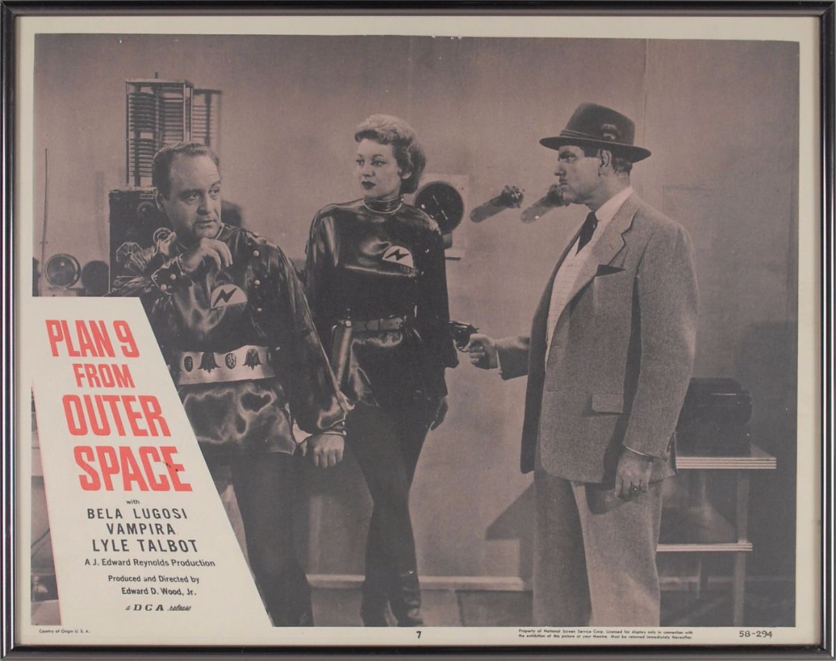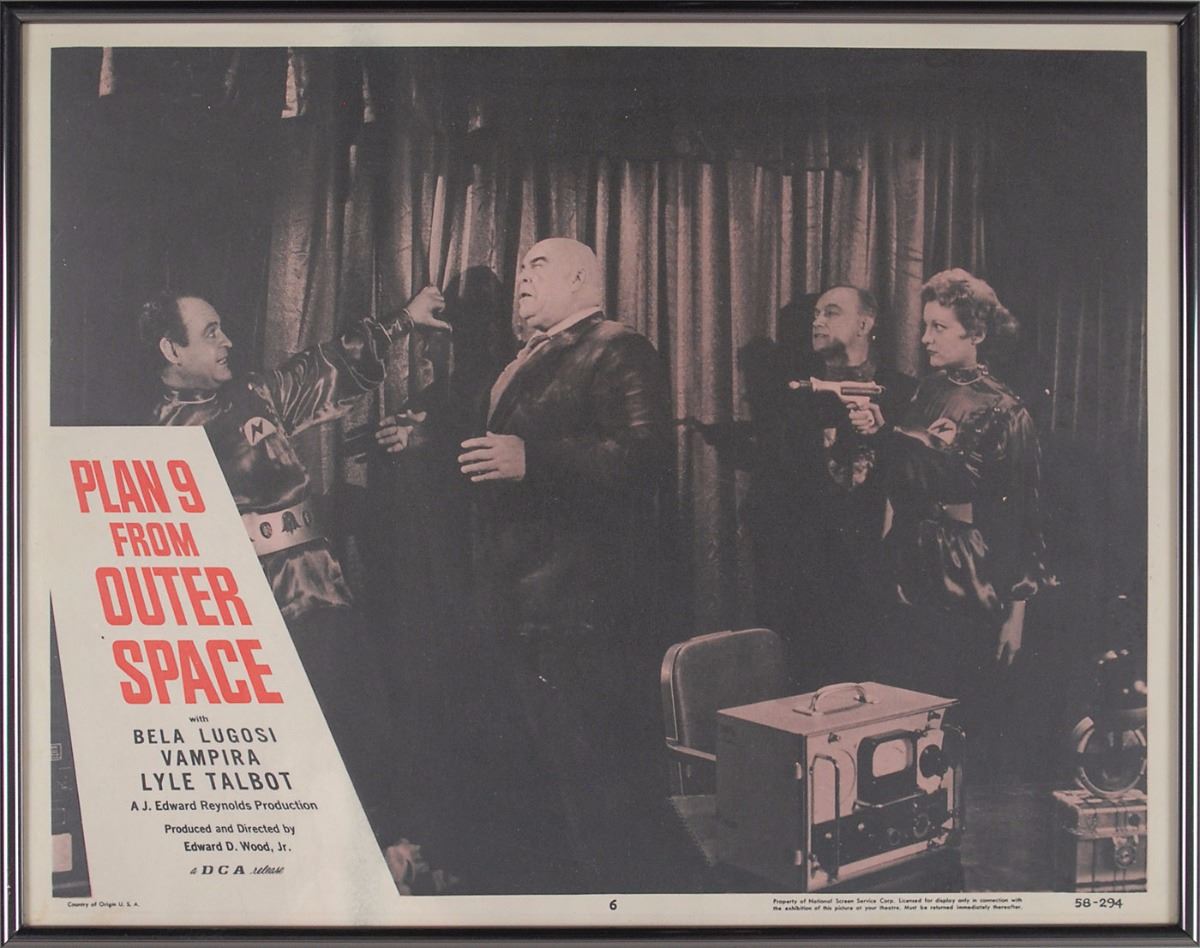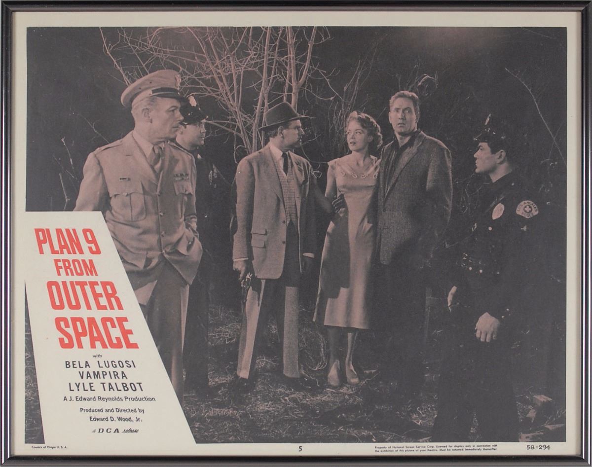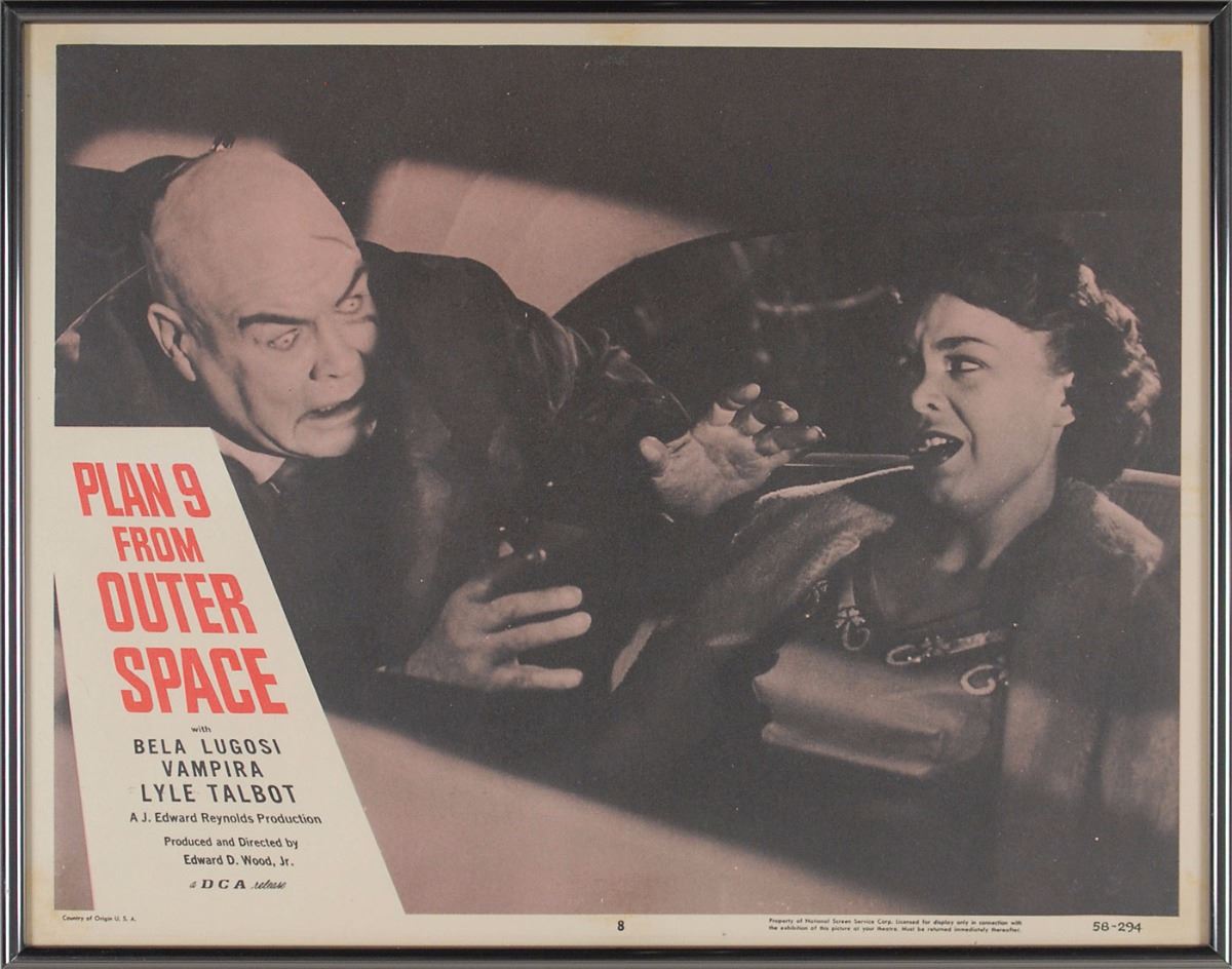 Scarce and sought-after complete set of eight 14 x 11 lobby cards for Plan 9 from Outer Space (DCA, 1958). Each is professionally framed for attractive display. In overall fine condition, with light scattered creases and soiling.