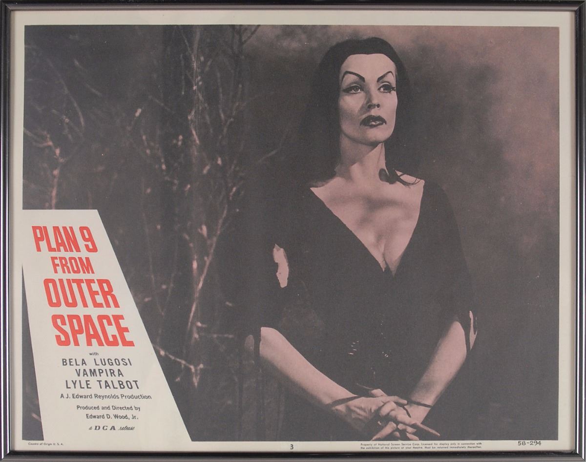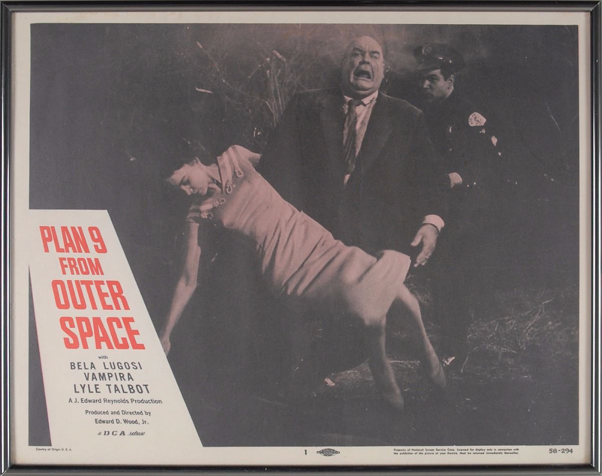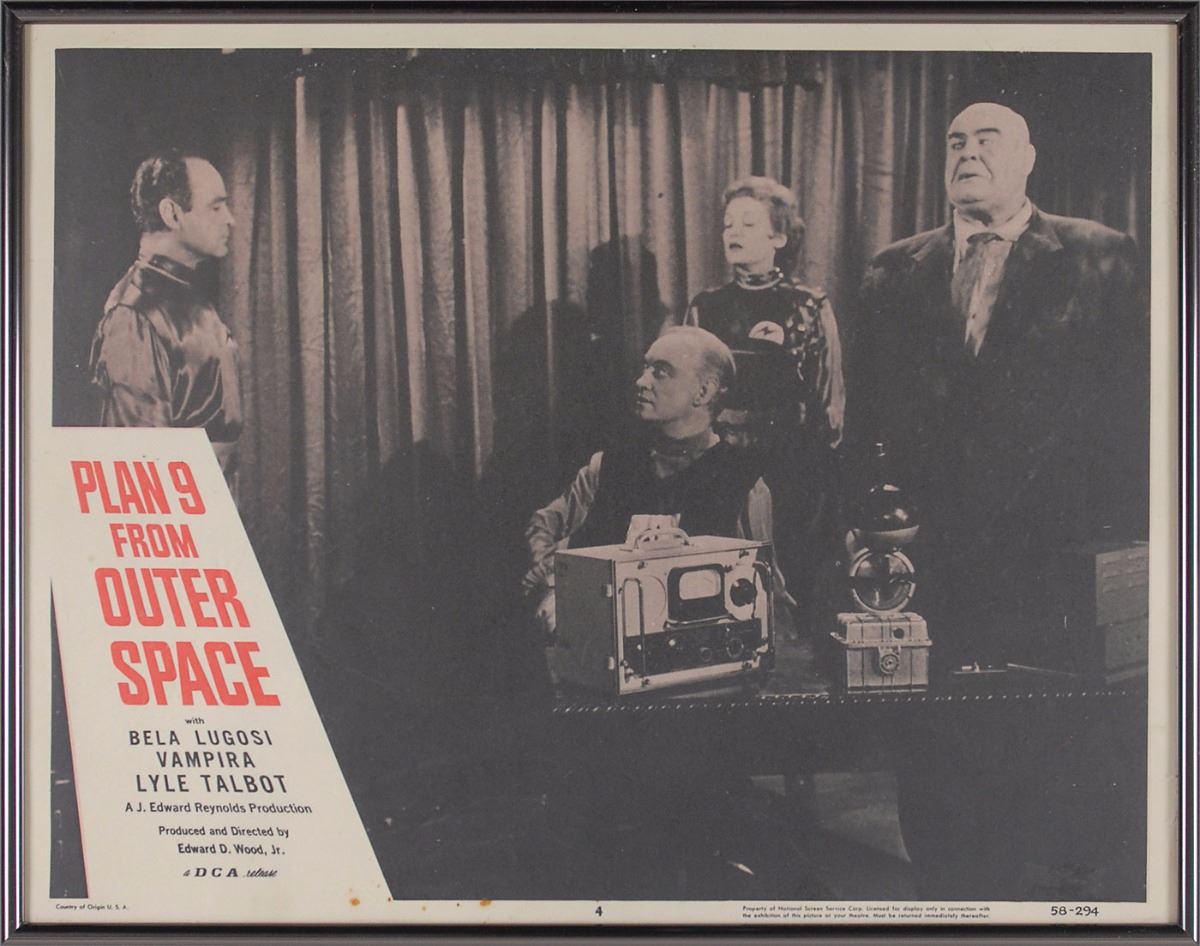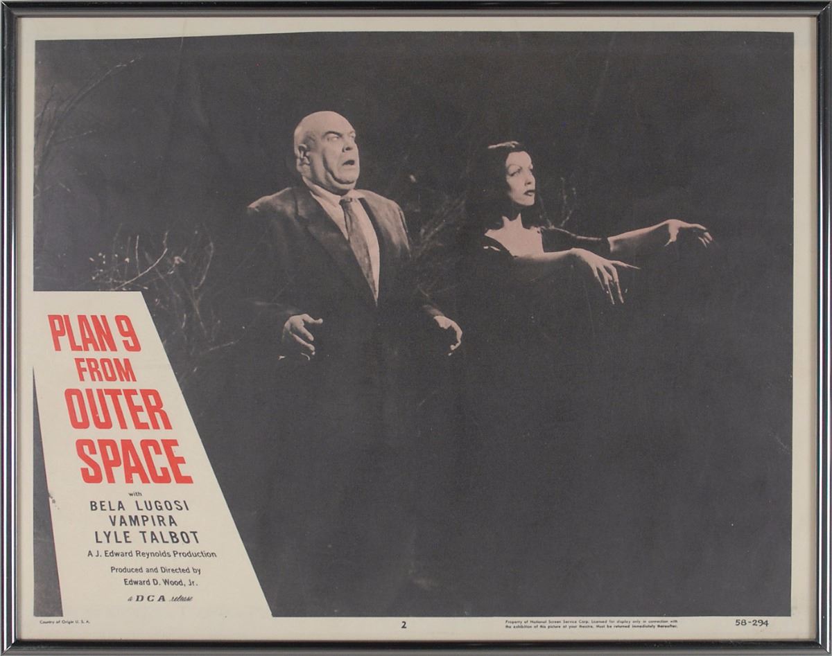 Scarce and sought-after complete set of eight 14 x 11 lobby cards for Plan 9 from Outer Space (DCA, 1958). Each is professionally framed for attractive display. In overall fine condition, with light scattered creases and soiling.