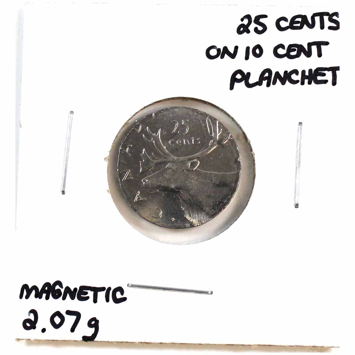 Planchet Error 25-cent Struck on 10-cent Planchet - Magnetic 2.07grams.