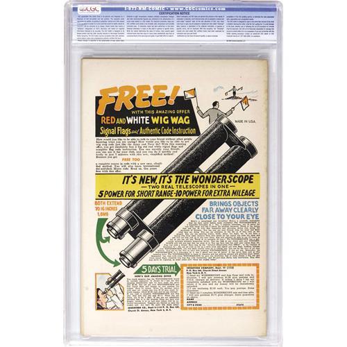 48C. COMICS – Comic books sold referencing a third-party grading service are sold "as is" without any express or implied warranty. Certain warranties may be available from the grading services and the Bidder is referred to them for further details: Comics Guaranty Corporation (CGC), P.O. Box 4738, Sarasota, FL 34230. Subject to sections 57 and 58, bidders who intend to challenge authenticity or provenance of a lot must notify Auctioneer in writing within thirty (30) days of the Auction's conclusion. Auctioneer's maximum liability shall not exceed the high bid on that lot, which bid shall be deemed for all purposes the value of the lot. In the event Auctioneer cannot deliver the lot or subsequently it is established that the lot lacks title, provenance, authenticity, or other transfer or condition issue is claimed, Auctioneer's liability shall be limited to recission of sale and refund of purchase price. After one year has elapsed, Auctioneer's maximum liability shall be limited to any commissions and fees Auctioneer earned on that lot.