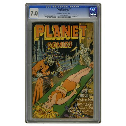 <B>Planet Comics #41 (Fiction House, 1946) CGC FN/VF 7.0 Cream to off-white pages.</B></I> Bondage cover. Lily Renee and Murphy Anderson art. Overstreet 2006 FN 6.0 value = $240; VF 8.0 value = $500. CGC census 3/06: 1 in 7.0, 9 higher.