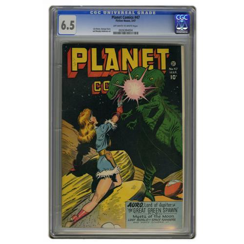 <B>Planet Comics #47 (Fiction House, 1947) CGC FN+ 6.5 Off-white to white pages.</B></I> Lily Renee, George Evans, and Murphy Anderson art. Overstreet 2006 FN 6.0 value = $186; VF 8.0 value = $388. CGC census 3/06: 2 in 6.5, 8 higher.