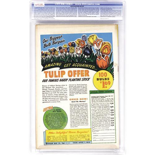 <B>Planet Comics #57 Davis Crippen ("D" Copy) pedigree (Fiction House, 1948) CGC VF+ 8.5 Off-white to white pages.</B></I> We've seen plenty of copies of this book, but never one this nice, and indeed it's tied for CGC's highest grade to date. Matt Baker, George Evans, and Graham Ingels contributed art to the issue. On Joe Doolin's cover, Hunt Bowman and the Lost World are featured, though Hunt himself doesn't appear. No problem since it's a beautiful lady battling Bowman's foemen! Overstreet 2006 VF 8.0 value = $388; VF/NM 9.0 value = $612. CGC census 6/06: 2 in 8.5, none higher. <I>From the Crippen Collection.</B></I> <BR><BR><B>Important notice:</B> Heritage usually auctions material at the rate of 200-250 lots per hour. On some occasions eBay Live bid software or the Internet may not be able to keep up with the pace of the auction. We recommend placing a realistic absentee bid now as insurance to avoid disappointment. Occasionally the auctioneer may eliminate or reject an eBay Live bid, and the auctioneer may also reopen a lot after the close of the eBay live bidding (usually because we missed an audience bid), and may reject your bid even if it shows you as the winning bidder. By bidding via eBay Live, you agree that Heritage may award the lot to another bidder at its sole discretion under the circumstances described above or any other reasonable circumstances. Since eBay bids are not shown to us until we open the lot on the floor, we treat those bids just like floor bids. In most cases the floor responds before the eBay bid is presented to us, due to Internet lag time, so for consistency we have made it a policy that floor bids are always considered first over tie eBay live bids. Also please note that all Heritage lots purchased through eBay Live carry a 22.5% Buyer's Premium. Please make sure you read the Terms and Conditions before you bid. This lot is being auctioned in conjunction with a live floor auction by Heritage Auction Galleries. All final auction and invoice information will be supplied by Heritage Auction Galleries, and all other information should be considered preliminary. Lot:41001 <BR><BR><B>Winning Notification and Billing:</B> After the FINAL session in this auction is complete, Heritage will send e-mail and snail mail invoices. This process normally takes several days. All final auction and invoice information will be supplied by Heritage Auction Galleries, and all other information should be considered preliminary. <BR><BR>This auction will be conducted on a live auction floor and over the Internet through eBay Live. If you choose to place an absentee bid, please take a moment to <font color='#0000ff'><u><a href='http://pages.ebay.com/liveauctions/help/before/laabsentee.html'>learn how eBay Live absentee bidding works</a></u></font><font color='#000000'>